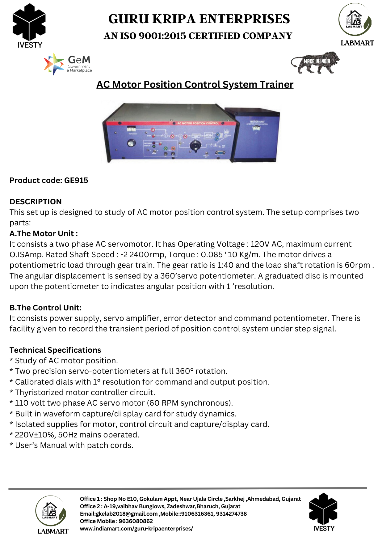 AC Motor Position Control System Trainer