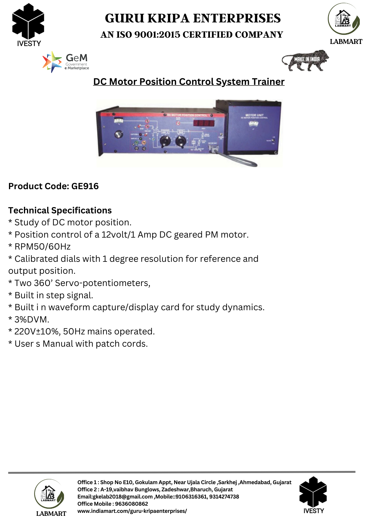DC Motor Position Control System Trainer