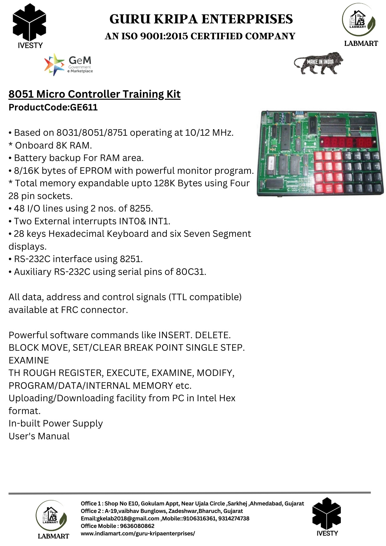 8051 Micro Controller Training Kit
