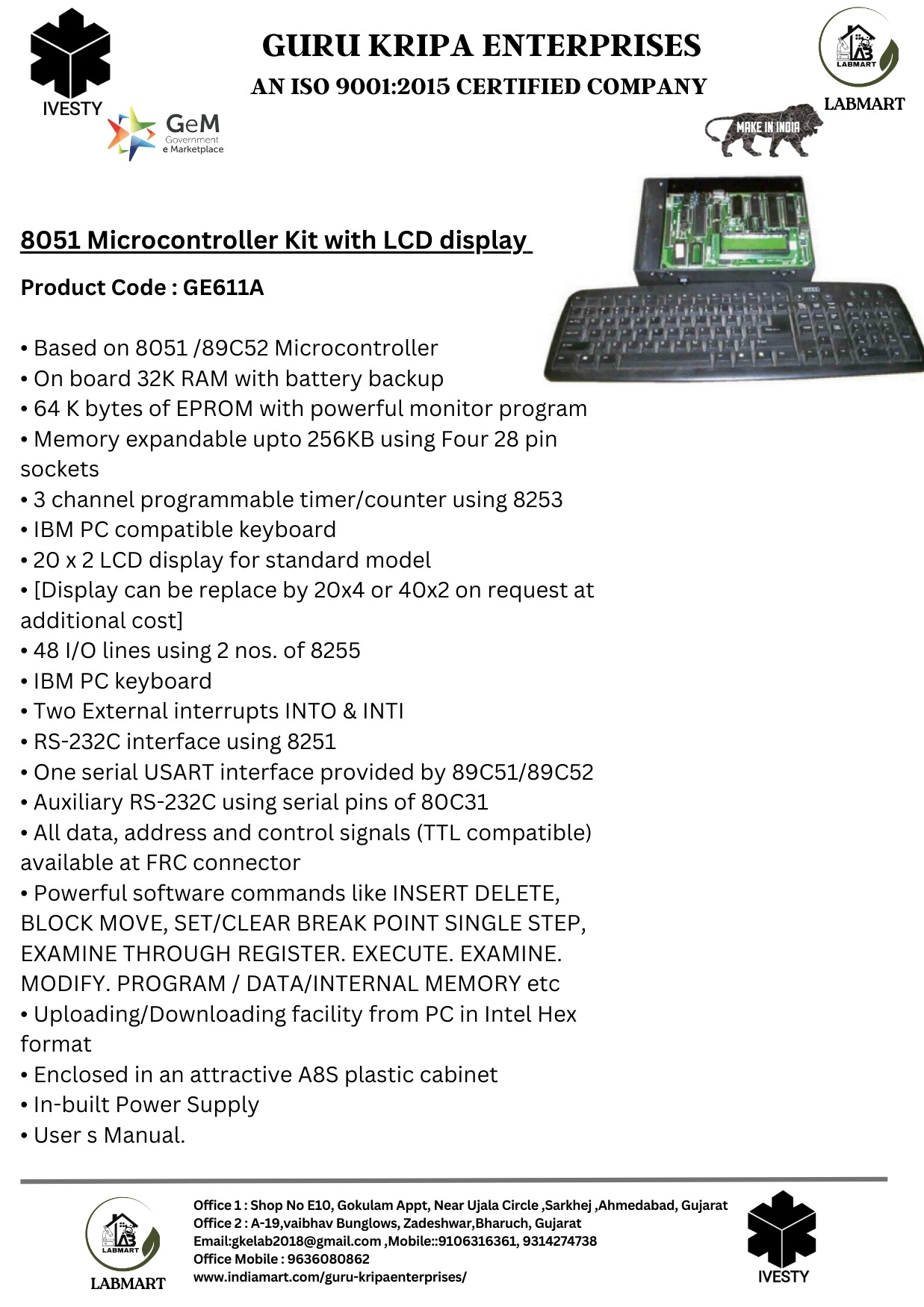 8051 Microcontroller Kit with LCD display