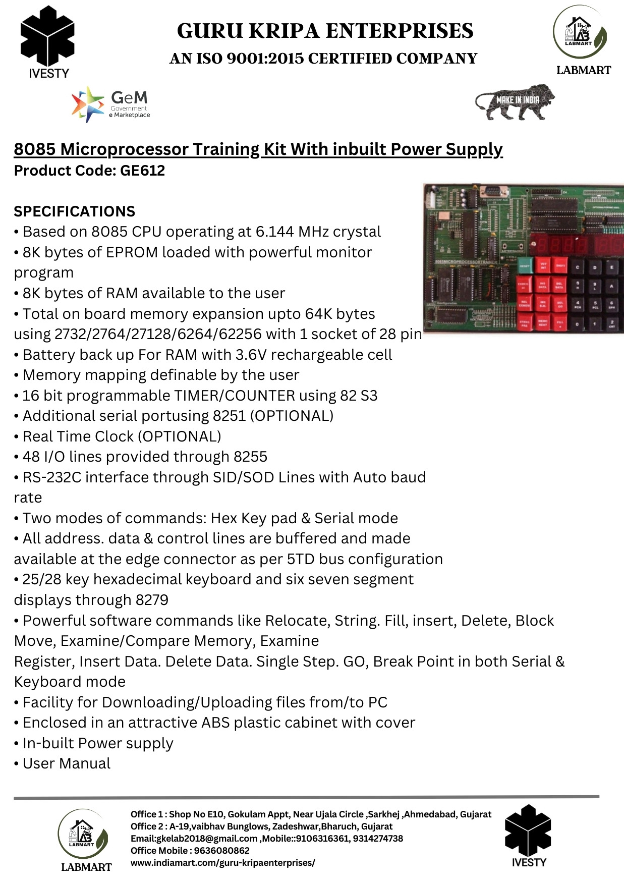 8085 Microprocessor Training Kit With inbuilt Power Supply