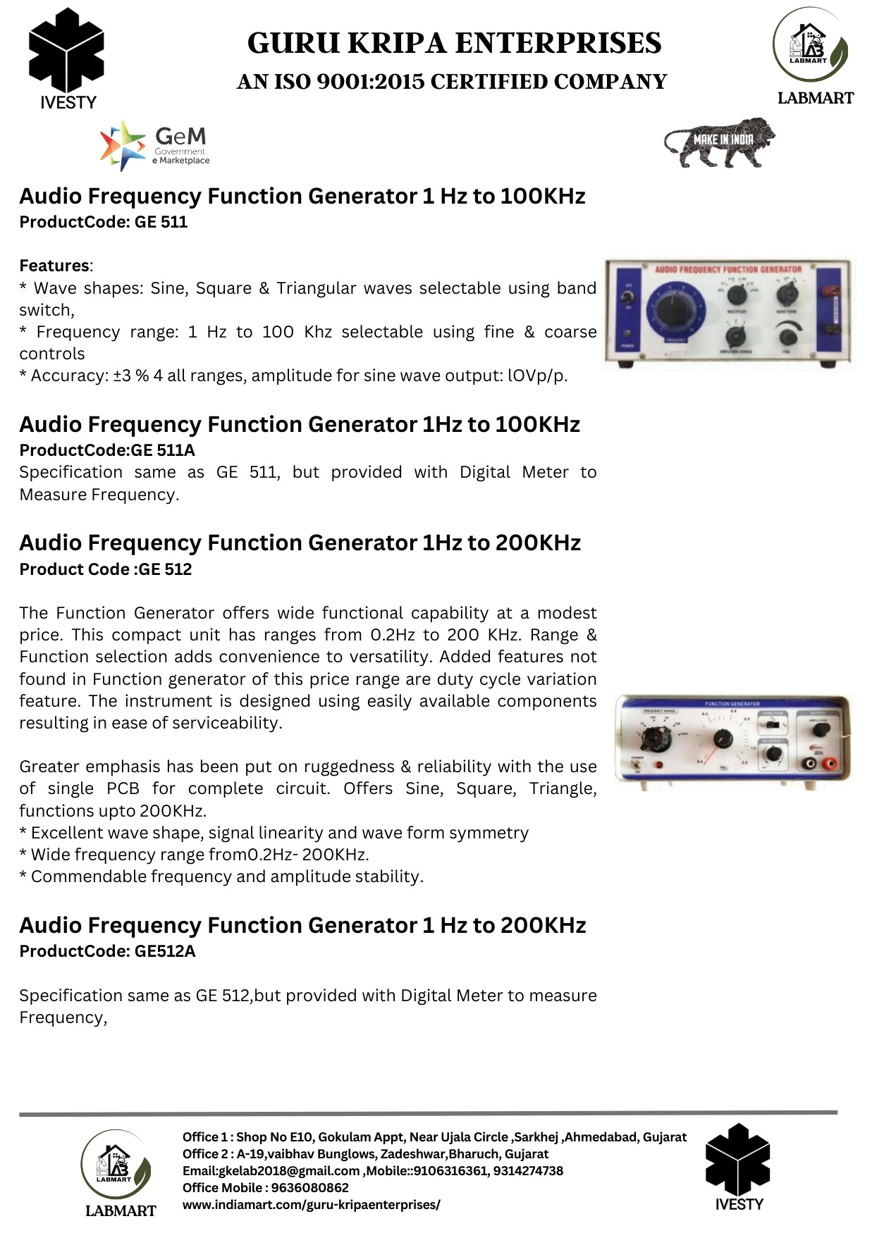 Audio Frequency Function Generator 1 Hz to 100KHz