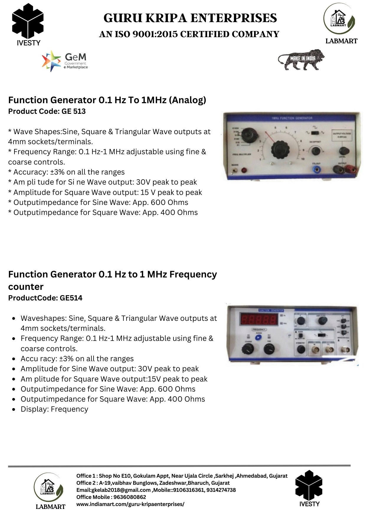 Function Generator 0.1 Hz To 1MHz (Analog)