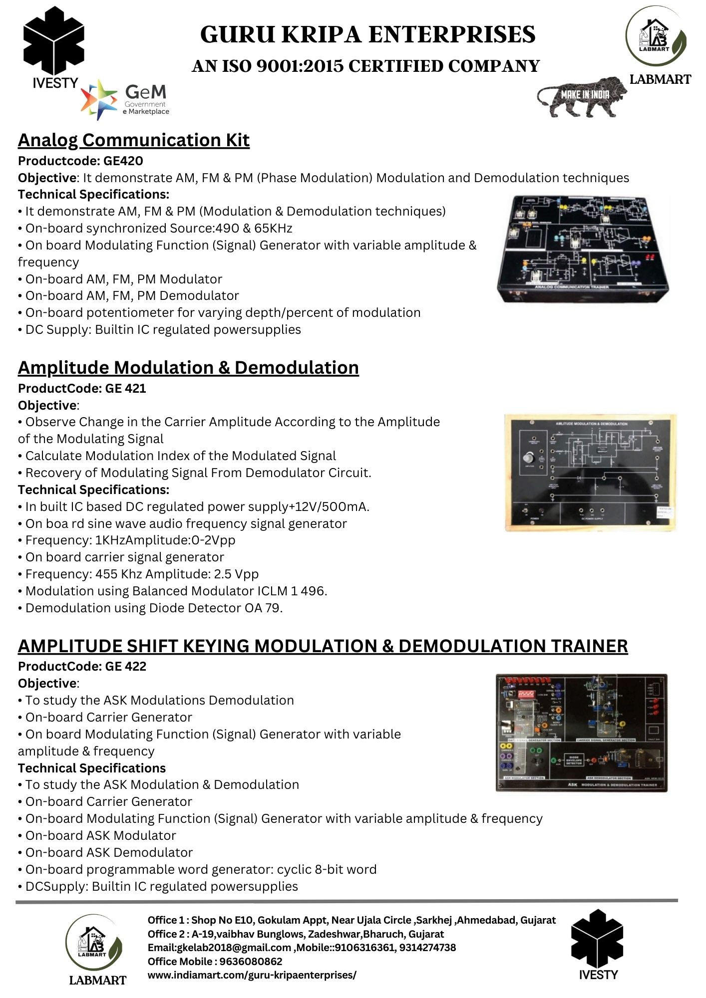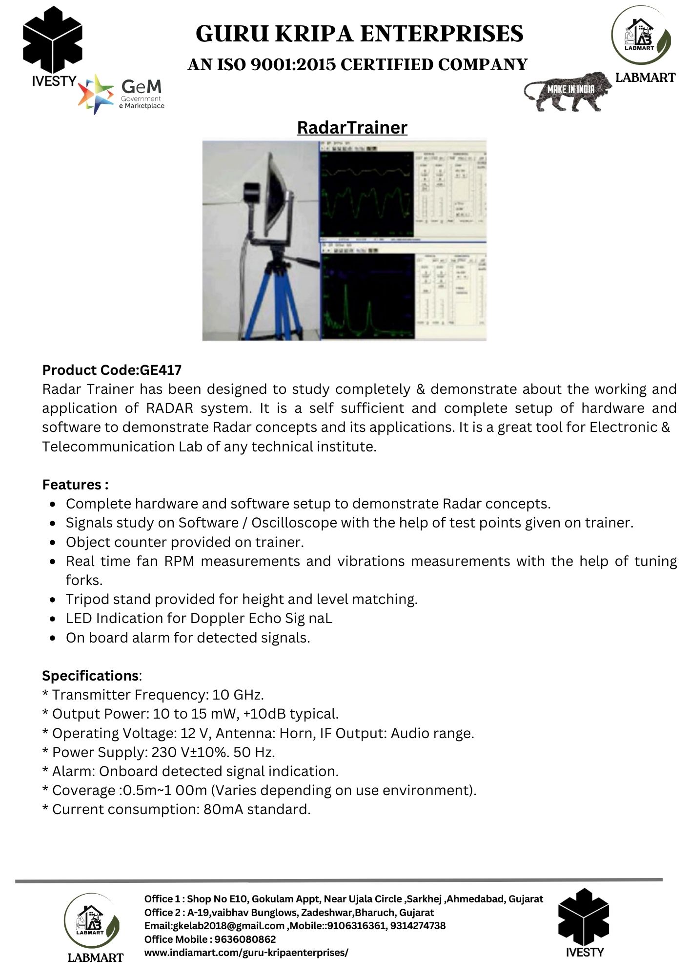 We are making Labs affordable and accessible to all. We provide complete 360-degree labs solution starting from designing the labs, consulting, and supplying required lab equipment, installing, and training of equipment. We have served more than 1000+ institutes across India making more than 1800+ laboratories. Our clients include DRDO, NITs, POLYTECHNICs, INDUSTRIAL TRAINING INSTITUTES, KENDRIYA VIDYALAYJNV, The Bhawanipur education society, State Autonomous Medical college Shahjahanpur, ONGC & many more.