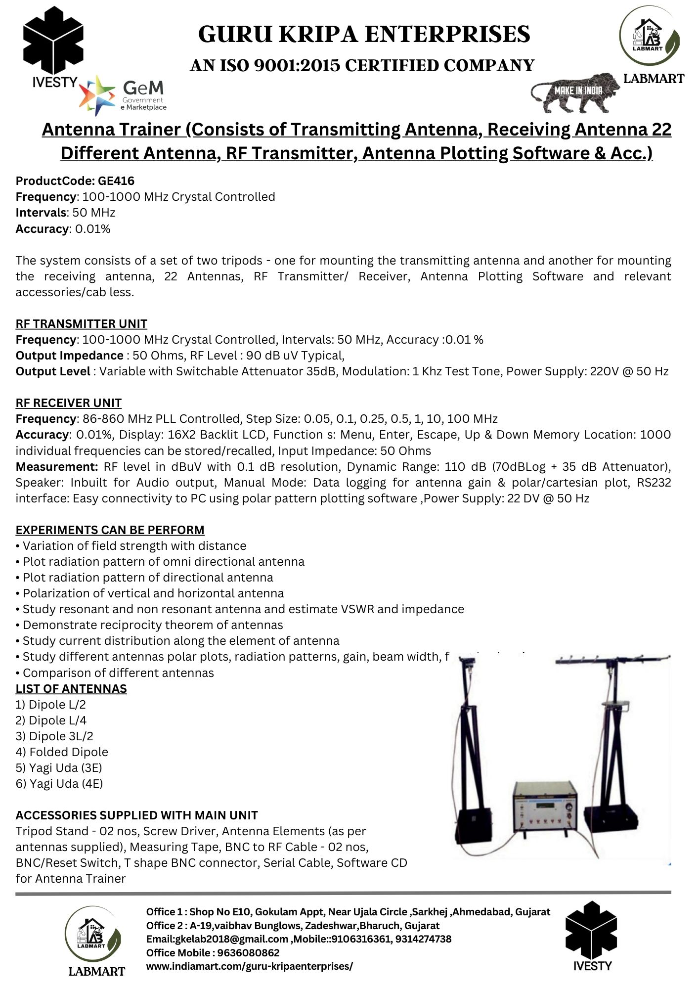 Antenna Trainer (Consists of Transmitting Antenna, Receiving Antenna 22 Different Antenna, RF Transmitter, Antenna Plotting Software & Acc.)