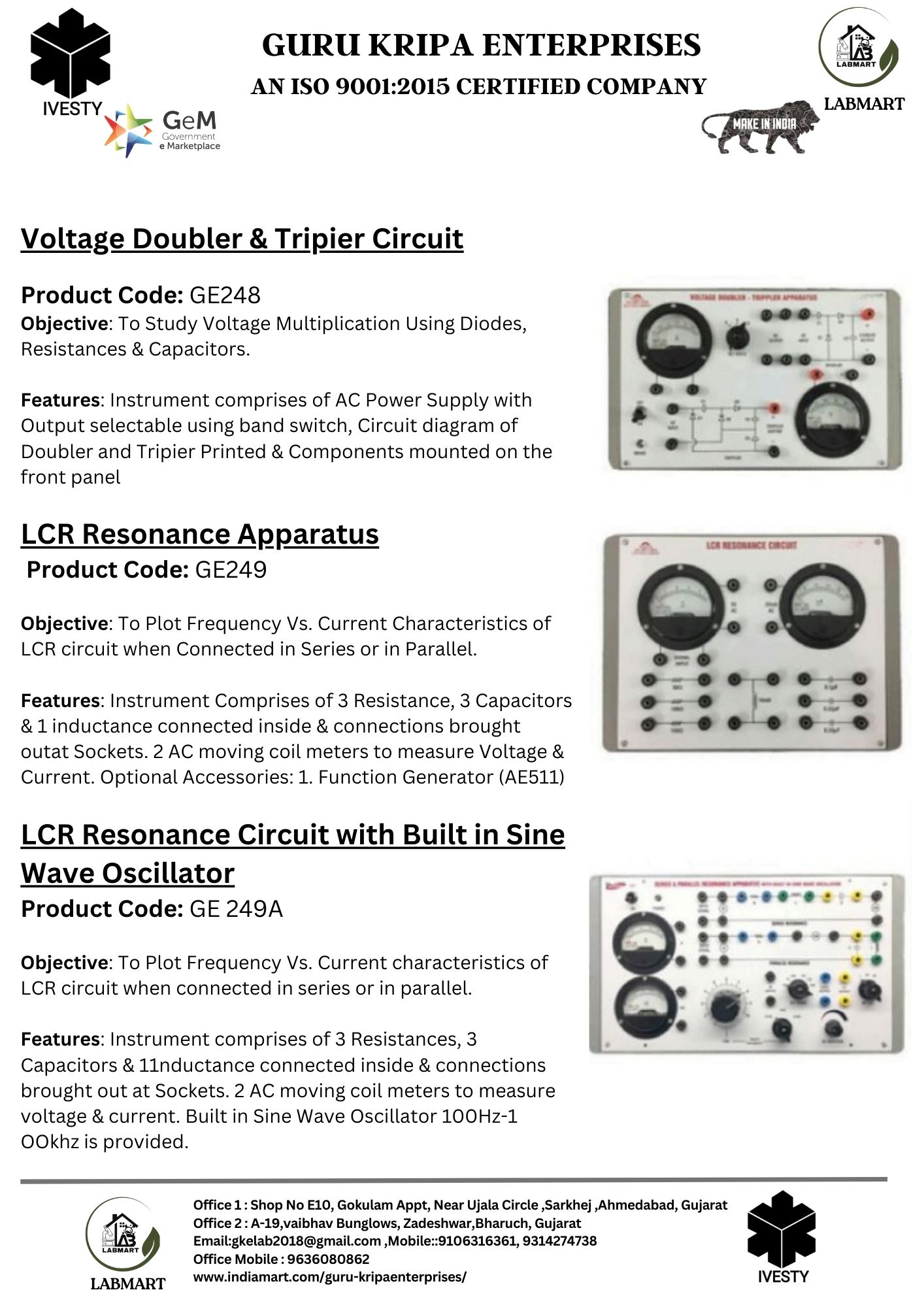 We are making Labs affordable and accessible to all. We provide complete 360-degree labs solution starting from designing the labs, consulting, and supplying required lab equipment, installing, and training of equipment. We have served more than 1000+ institutes across India making more than 1800+ laboratories. Our clients include DRDO, NITs, POLYTECHNICs, INDUSTRIAL TRAINING INSTITUTES, KENDRIYA VIDYALAYJNV, The Bhawanipur education society, State Autonomous Medical college Shahjahanpur, ONGC & many more.
