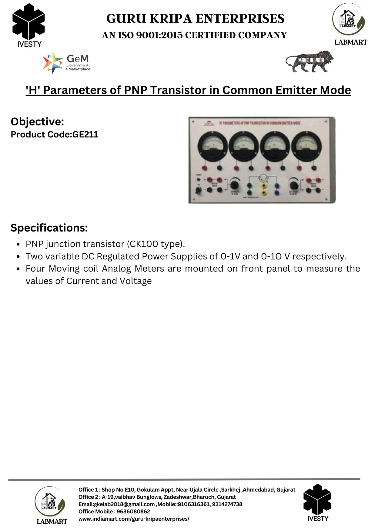 'H' Parameters of PNP Transistor in Common Emitter Mode