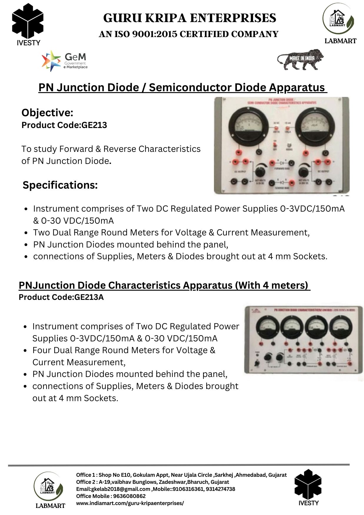 PN Junction/Zener Diode/LED Characteristics Apparatus