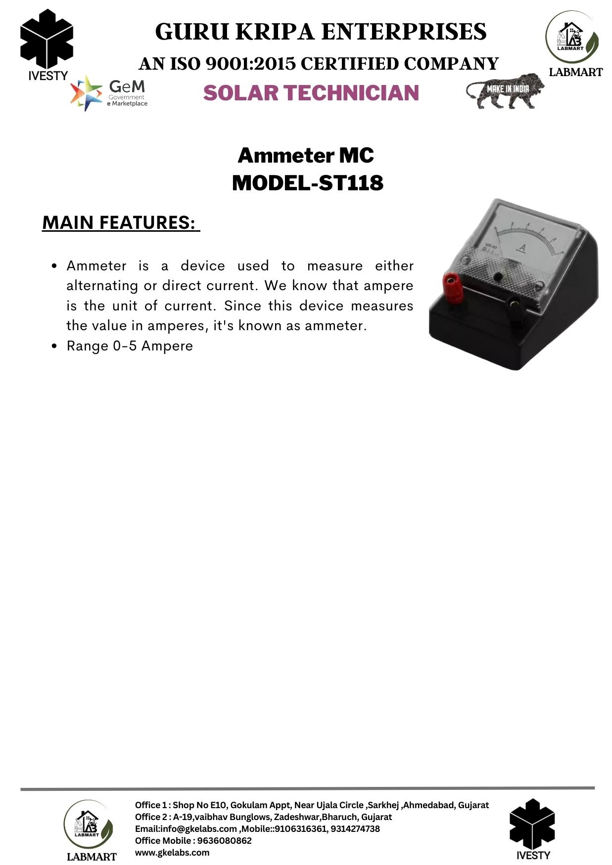 Ammeter MC MODEL-ST118