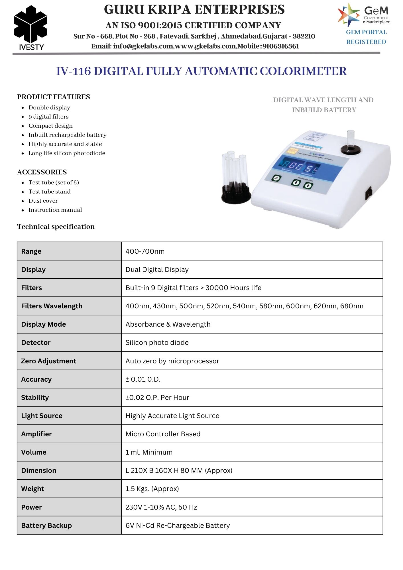 DIGITAL FULLY AUTOMATIC COLORIMETER