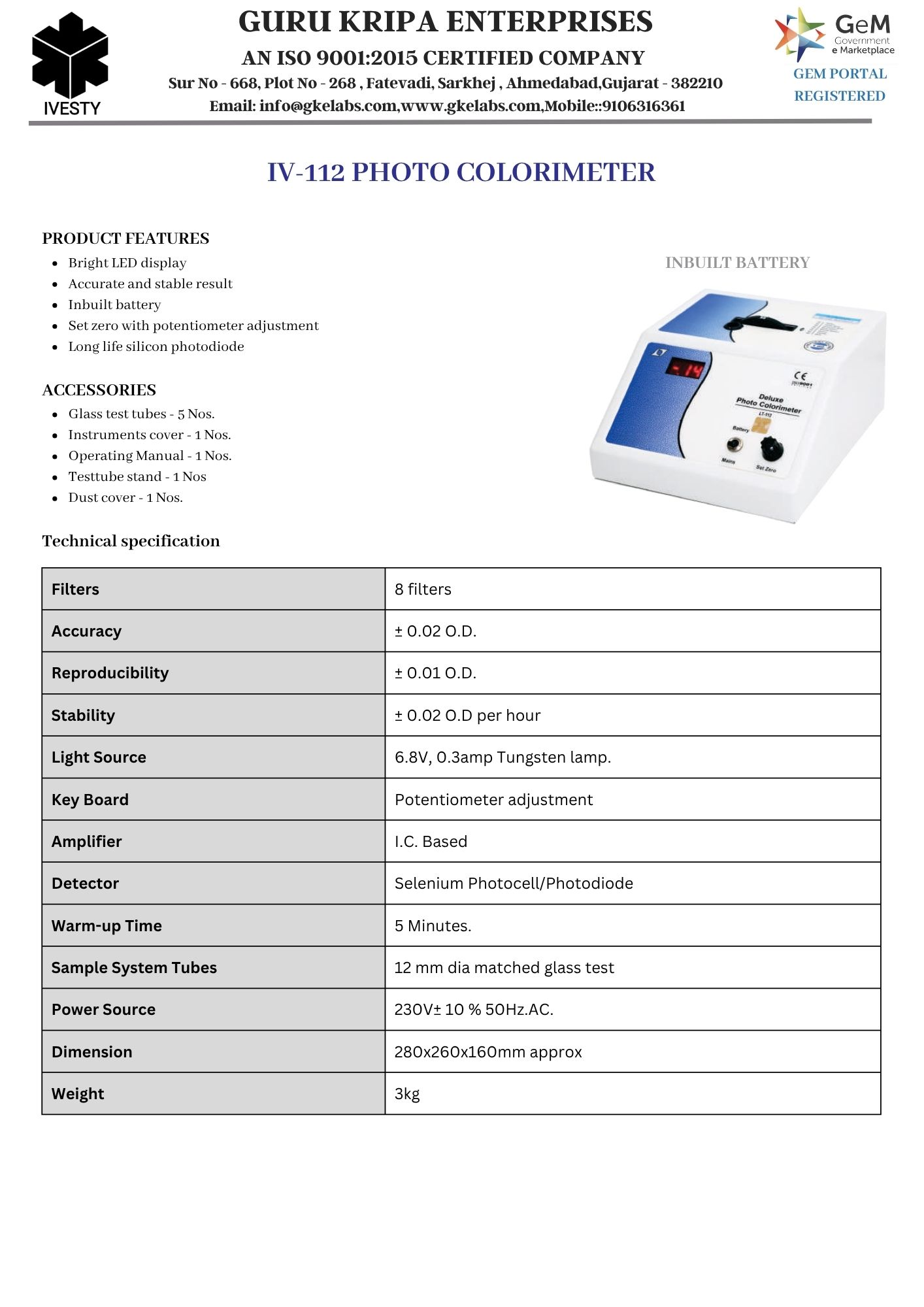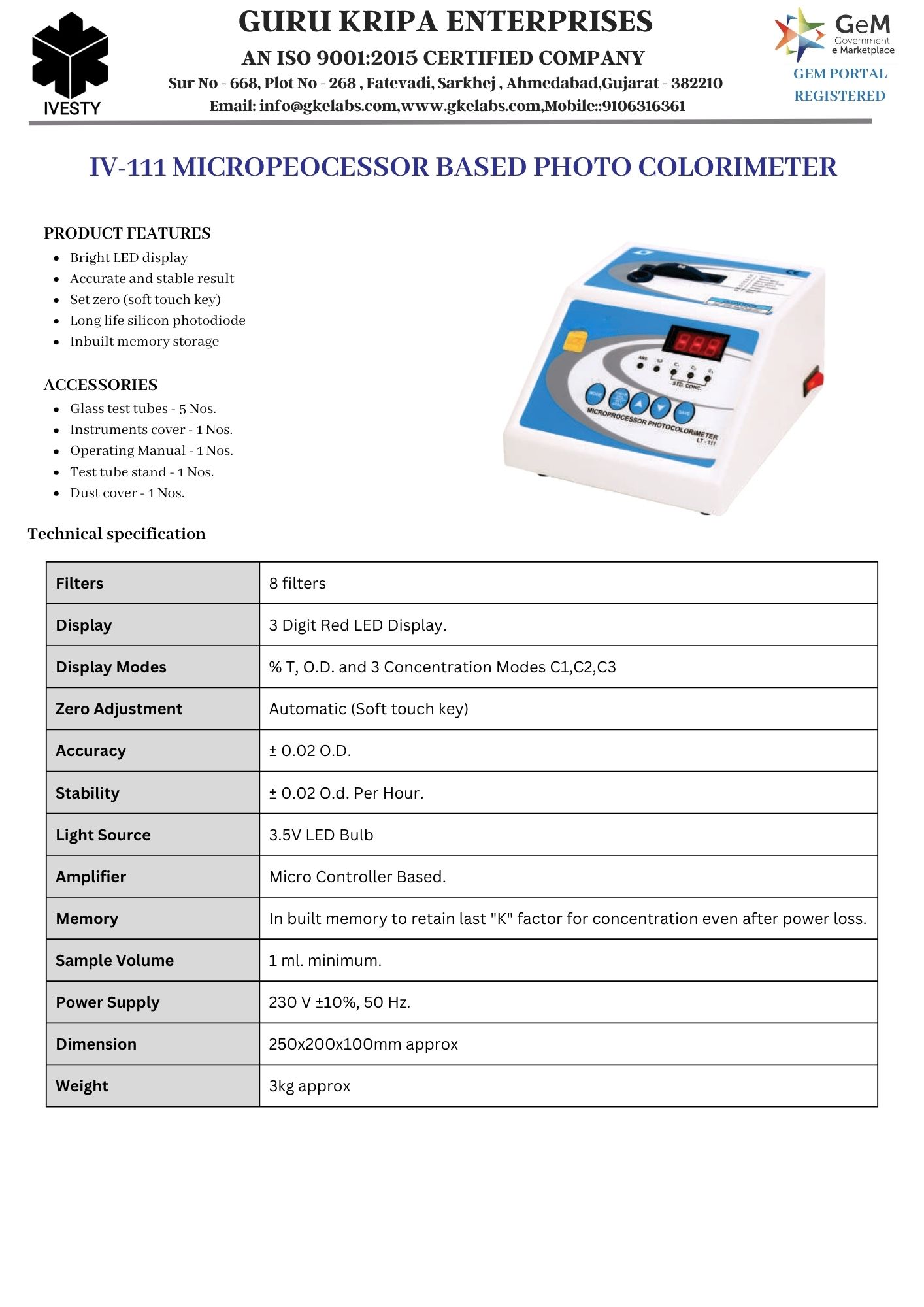 MICROPEOCESSOR BASED PHOTO COLORIMETER