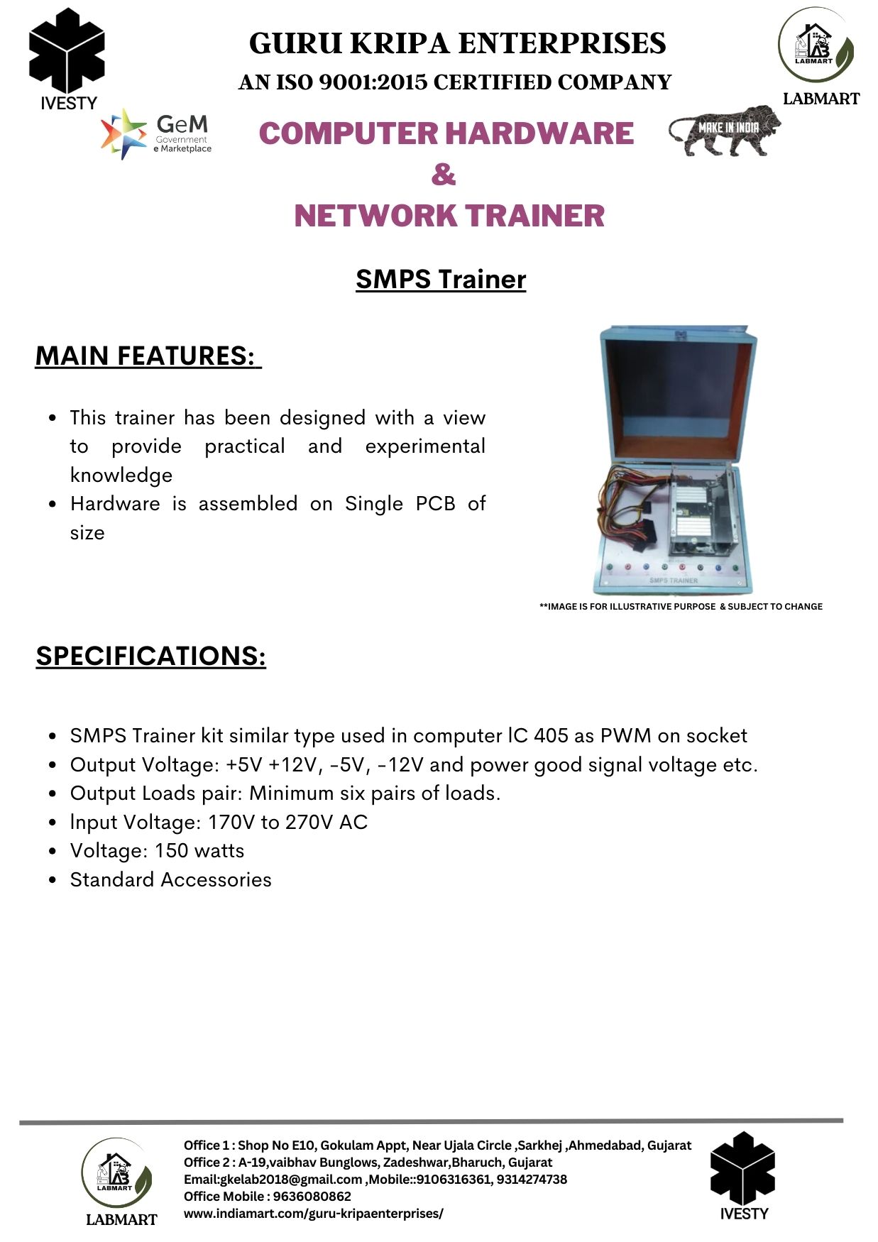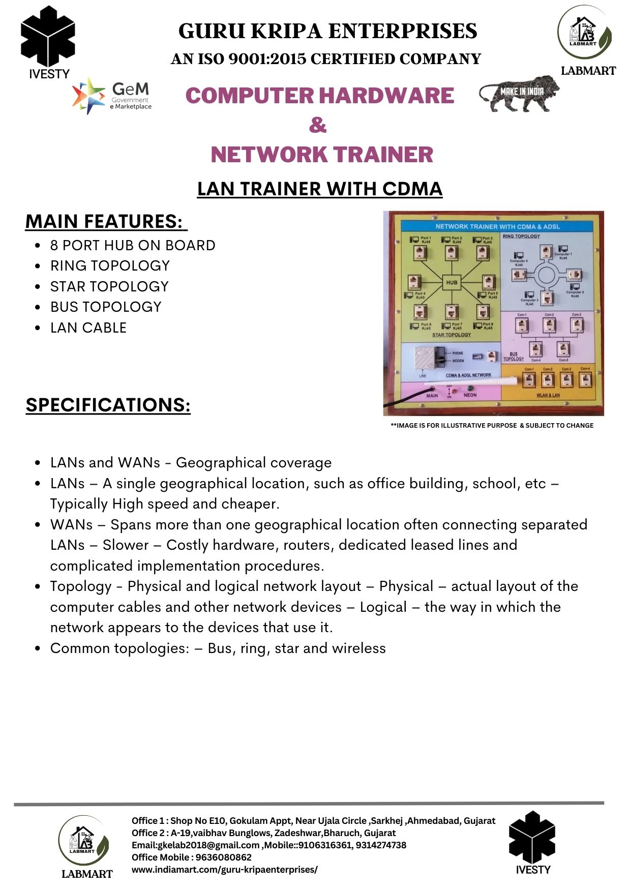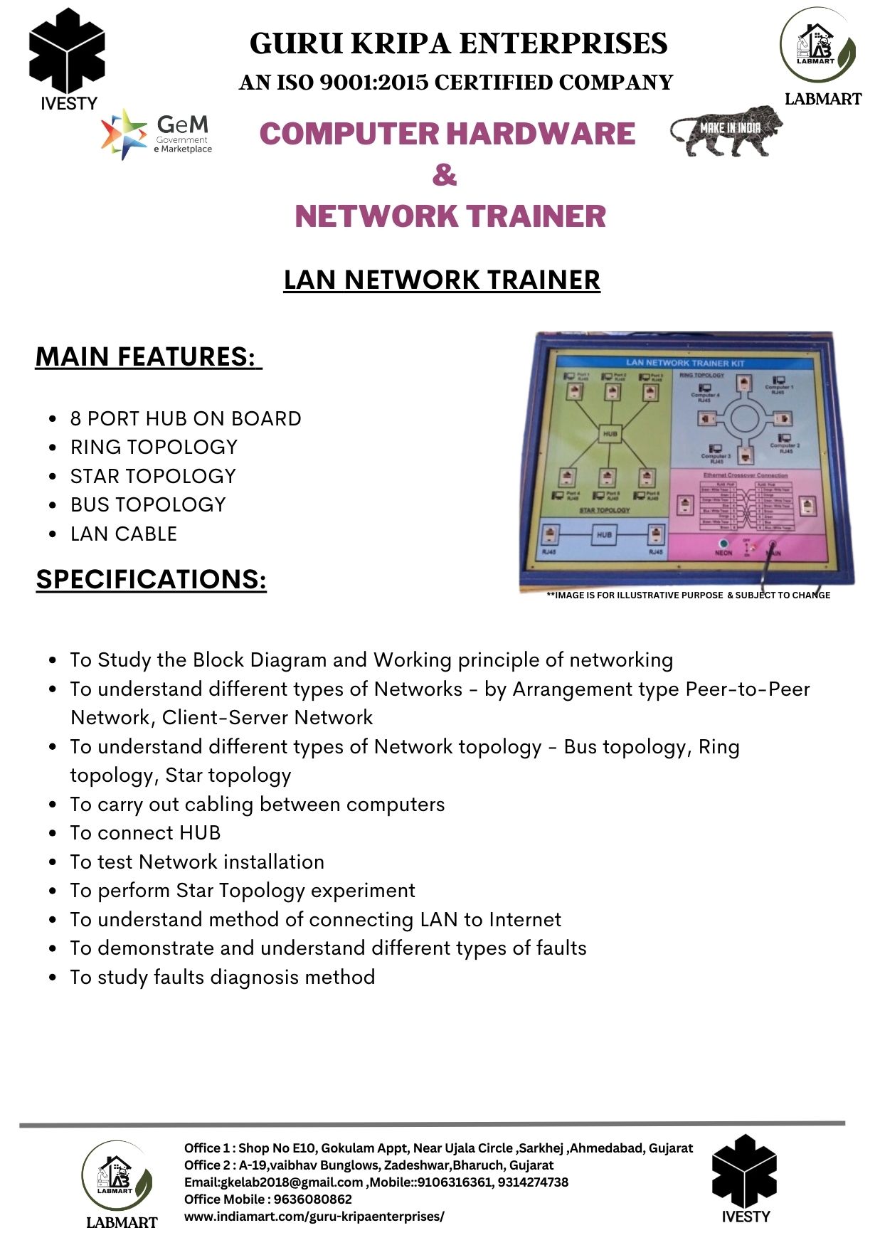 We are making Labs affordable and accessible to all. We provide complete 360-degree labs solution starting from designing the labs, consulting, and supplying required lab equipment, installing, and training of equipment. We have served more than 1000+ institutes across India making more than 1800+ laboratories. Our clients include DRDO, NITs, POLYTECHNICs, INDUSTRIAL TRAINING INSTITUTES, KENDRIYA VIDYALAYJNV, The Bhawanipur education society, State Autonomous Medical college Shahjahanpur, ONGC & many more.