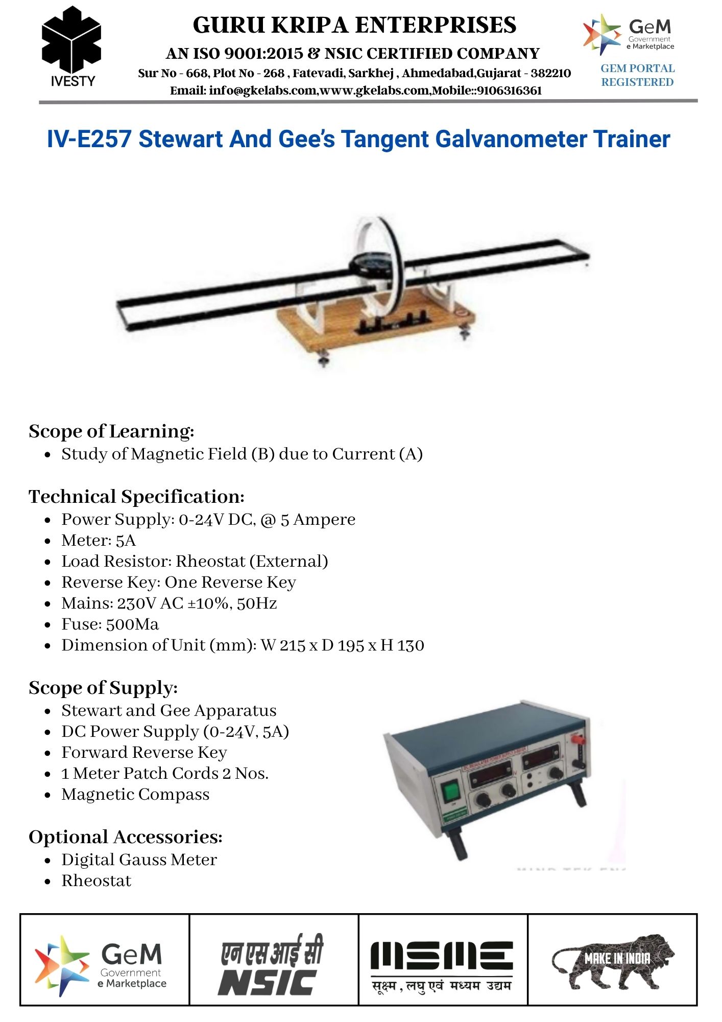 Stewart And GEE’s Tangent Galvanometer Trainer