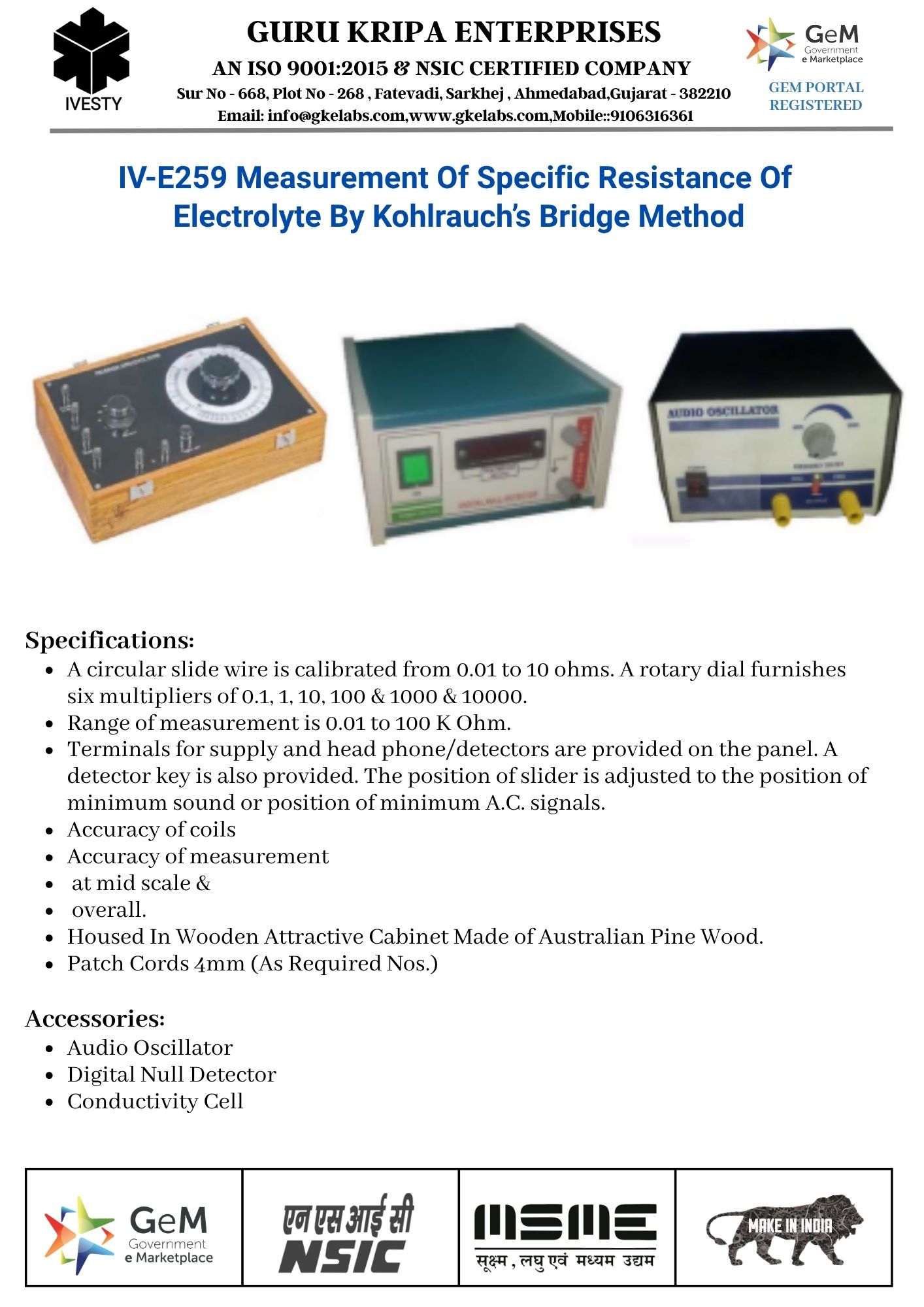 Measurement Of Specific Resistance Of Electrolyte By Kohlrauch’s Bridge Method