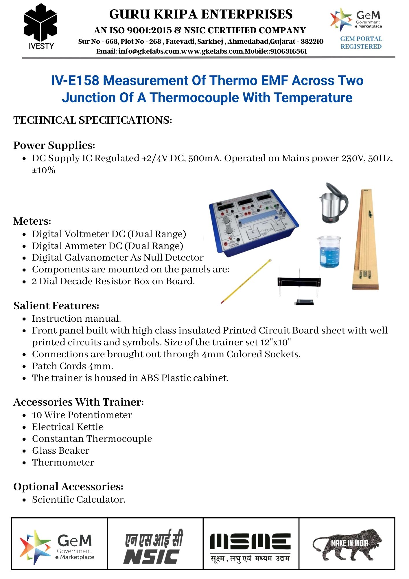 Measurement Of Thermo EMF Across Two Junction Of A Thermocouple With Temperature