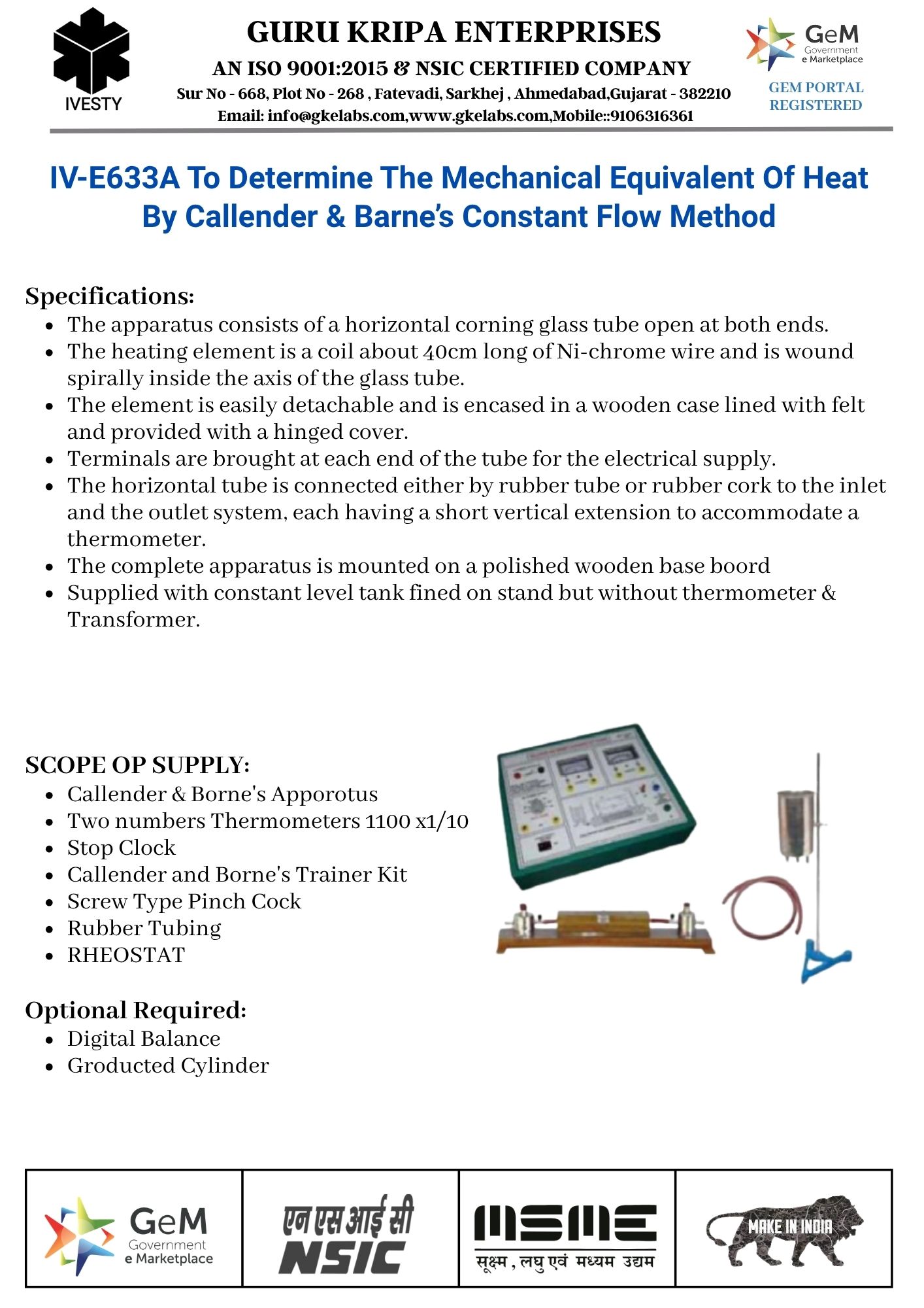 To Determine The Mechanical Equivalent Of Heat By Callender & Barne’s Constant Flow Method