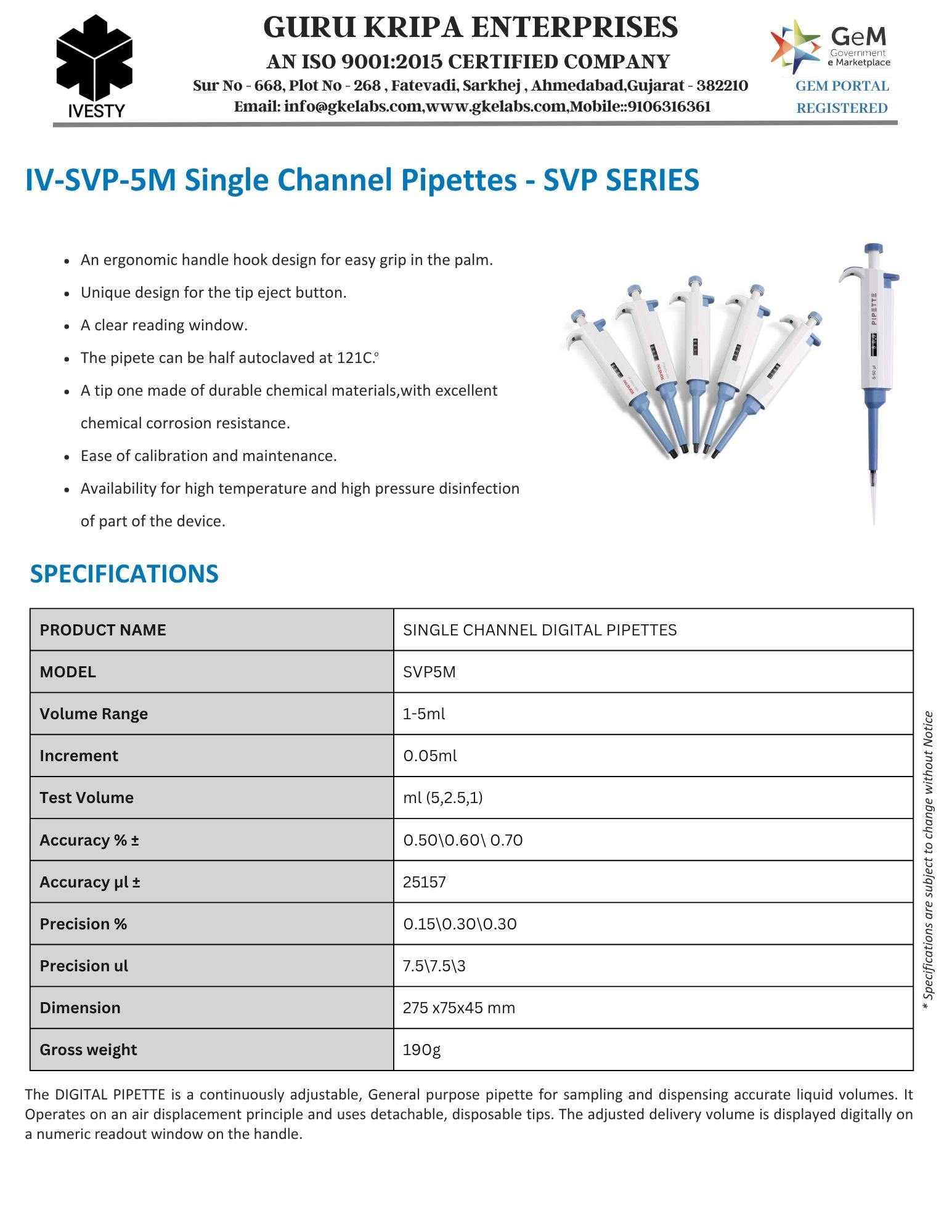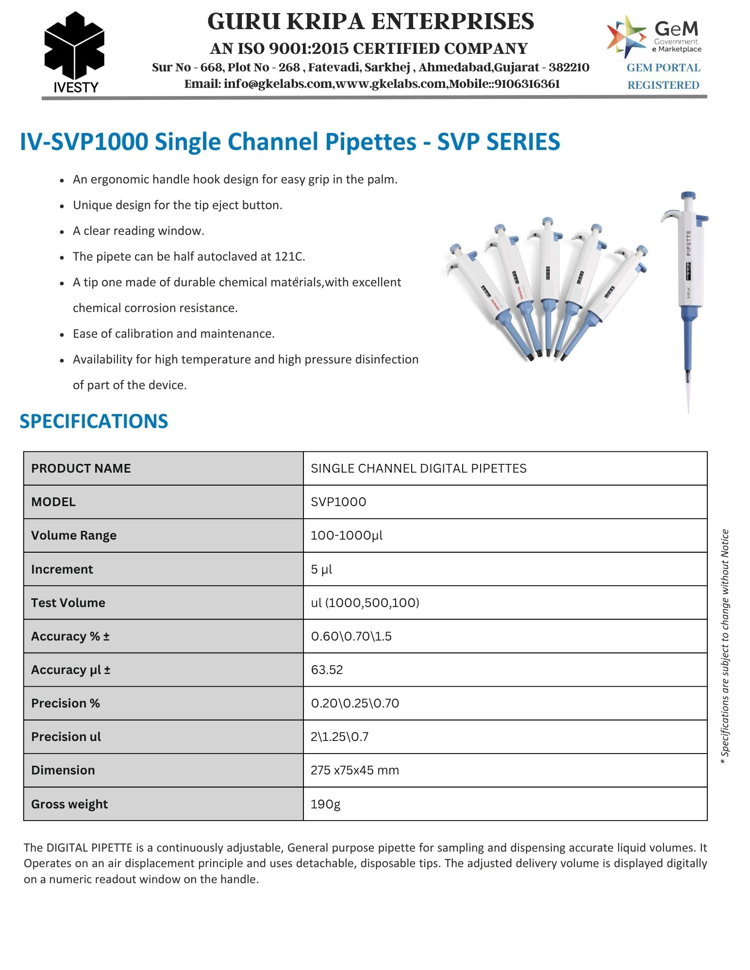 Single Channel Pipettes - SVP SERIES