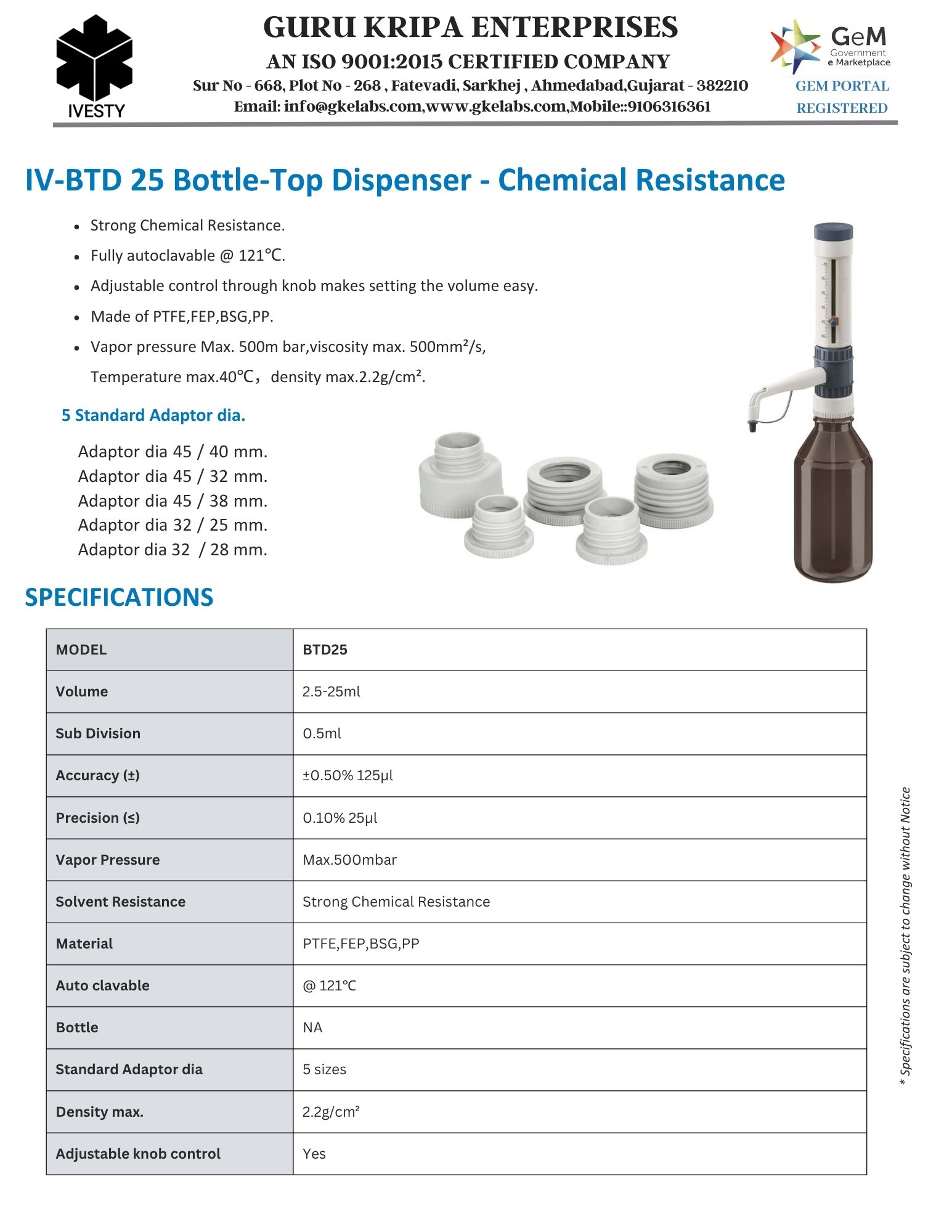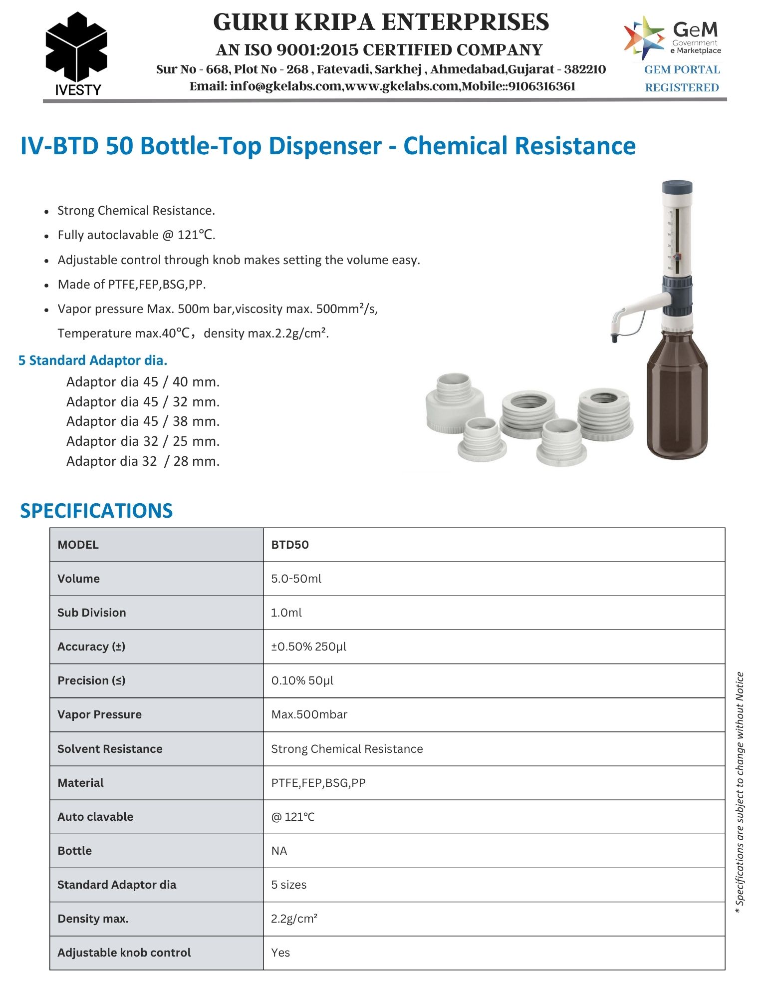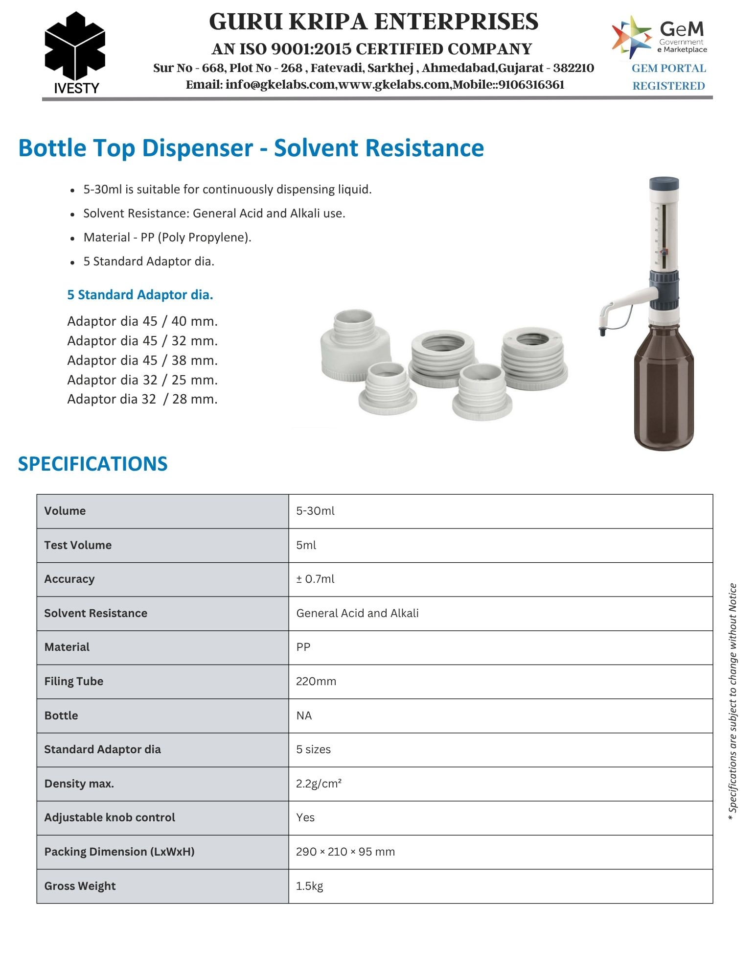 Bottle-Top Dispenser - Chemical Resistance