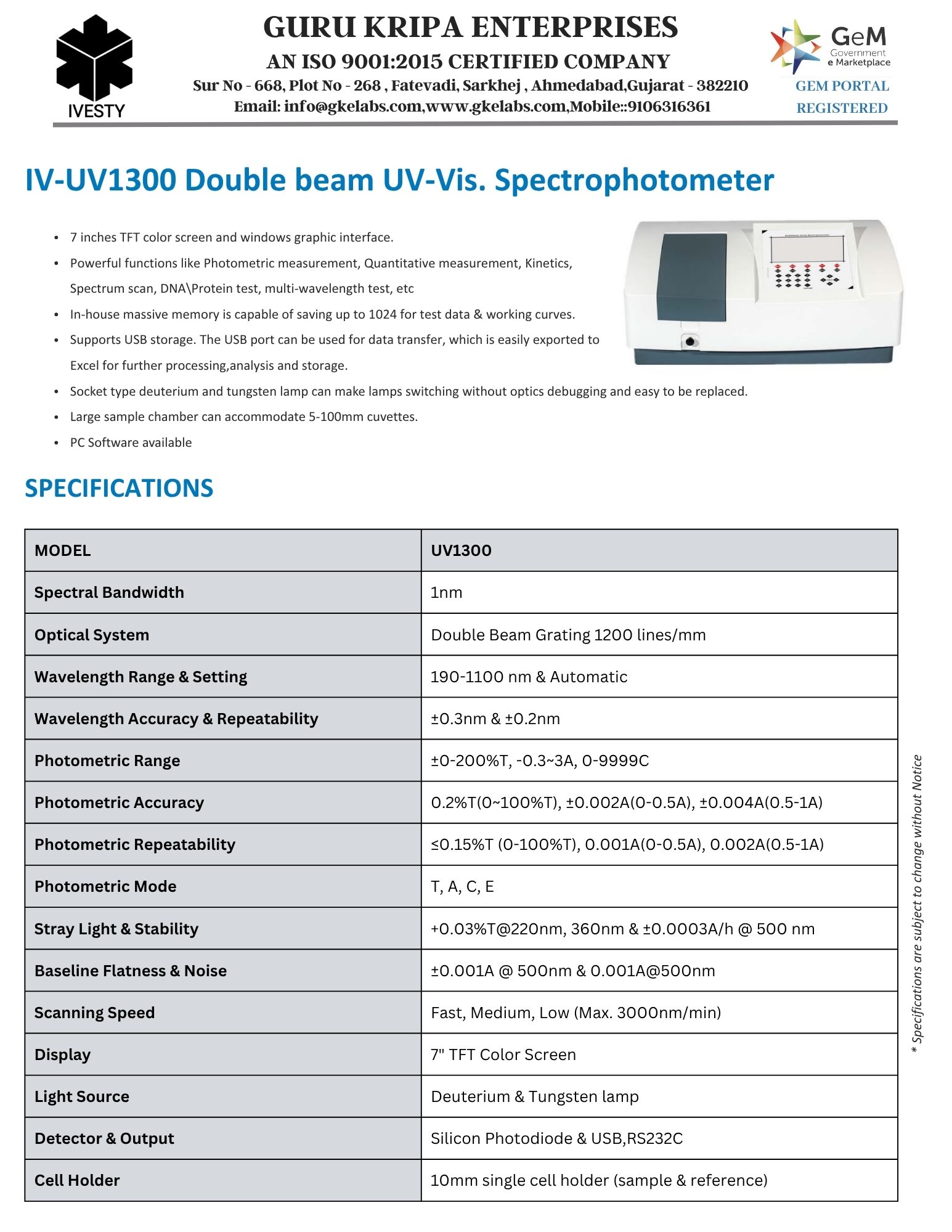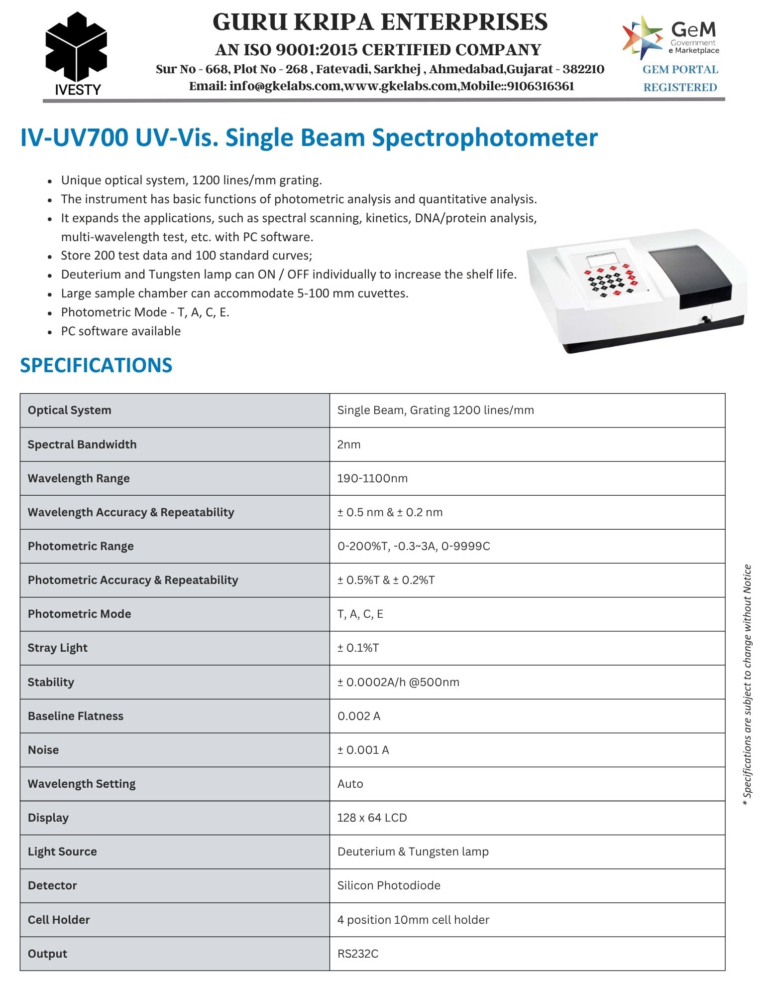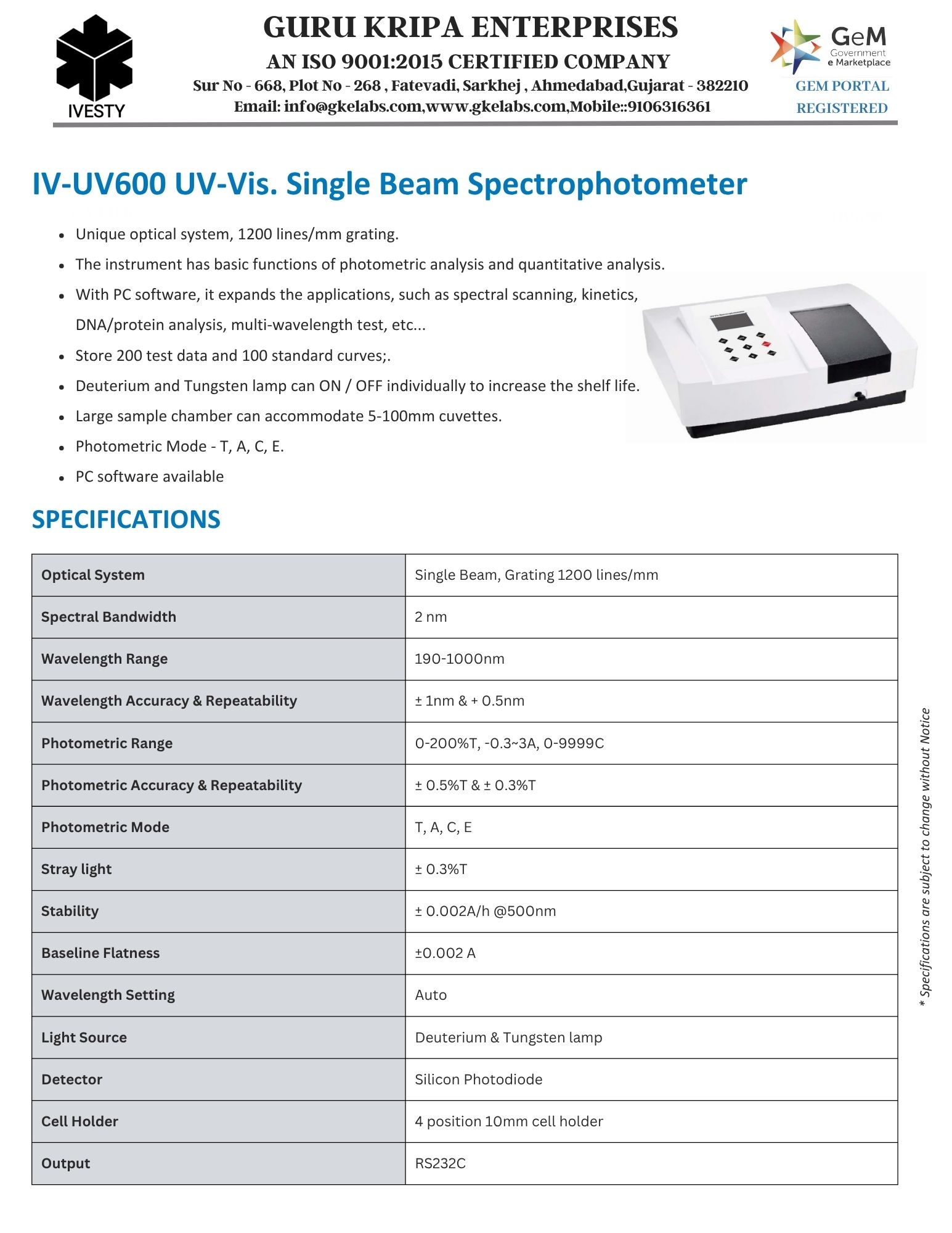 UV-Vis. Single Beam Spectrophotometer