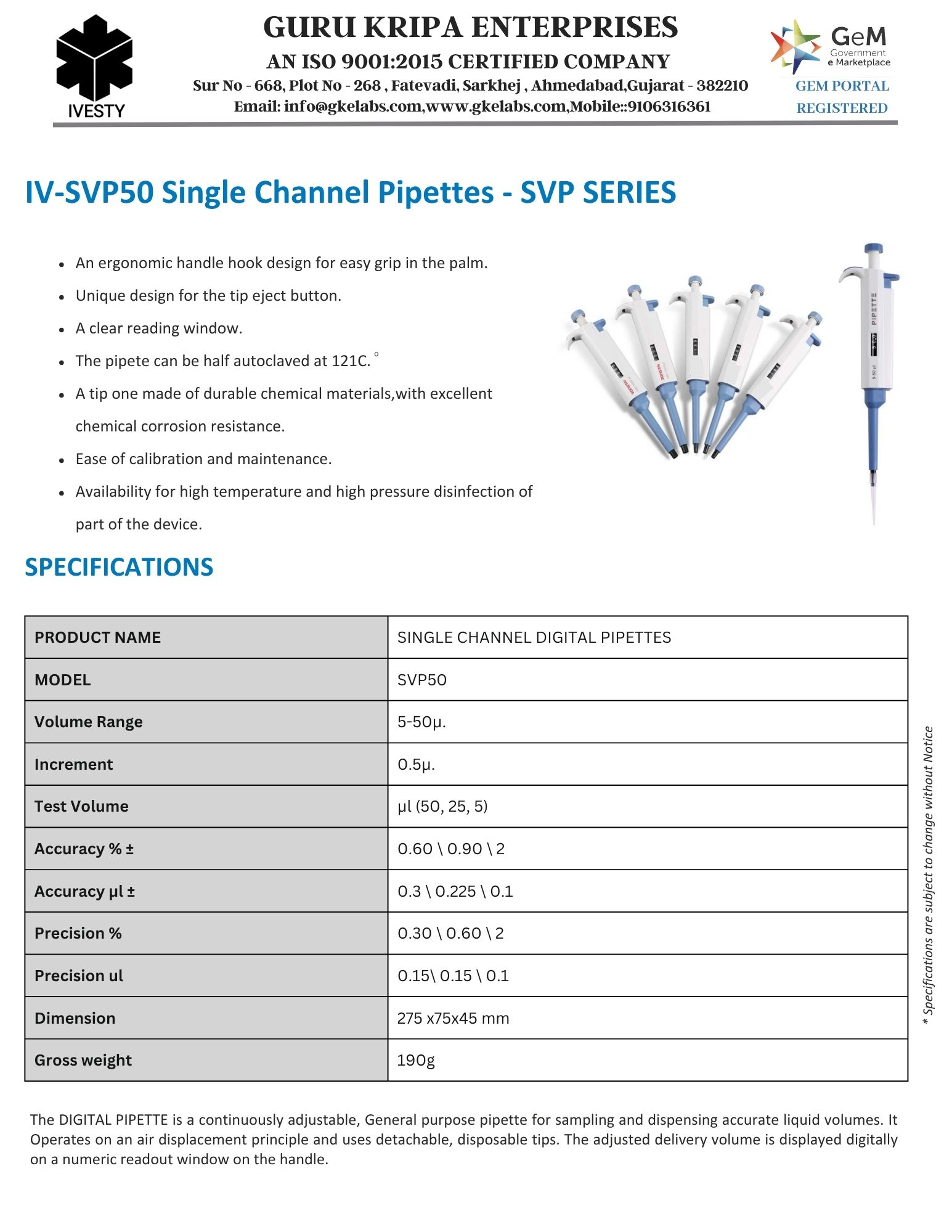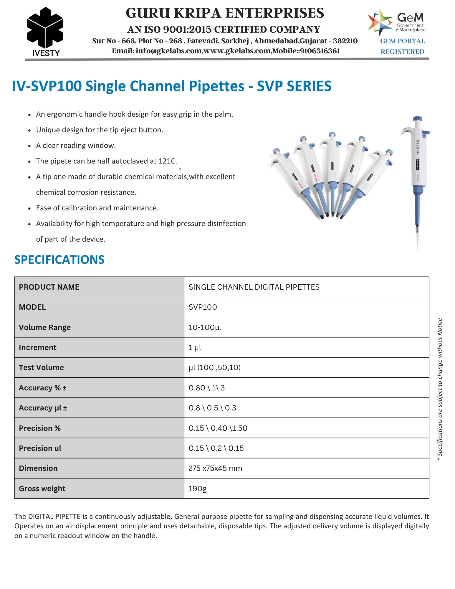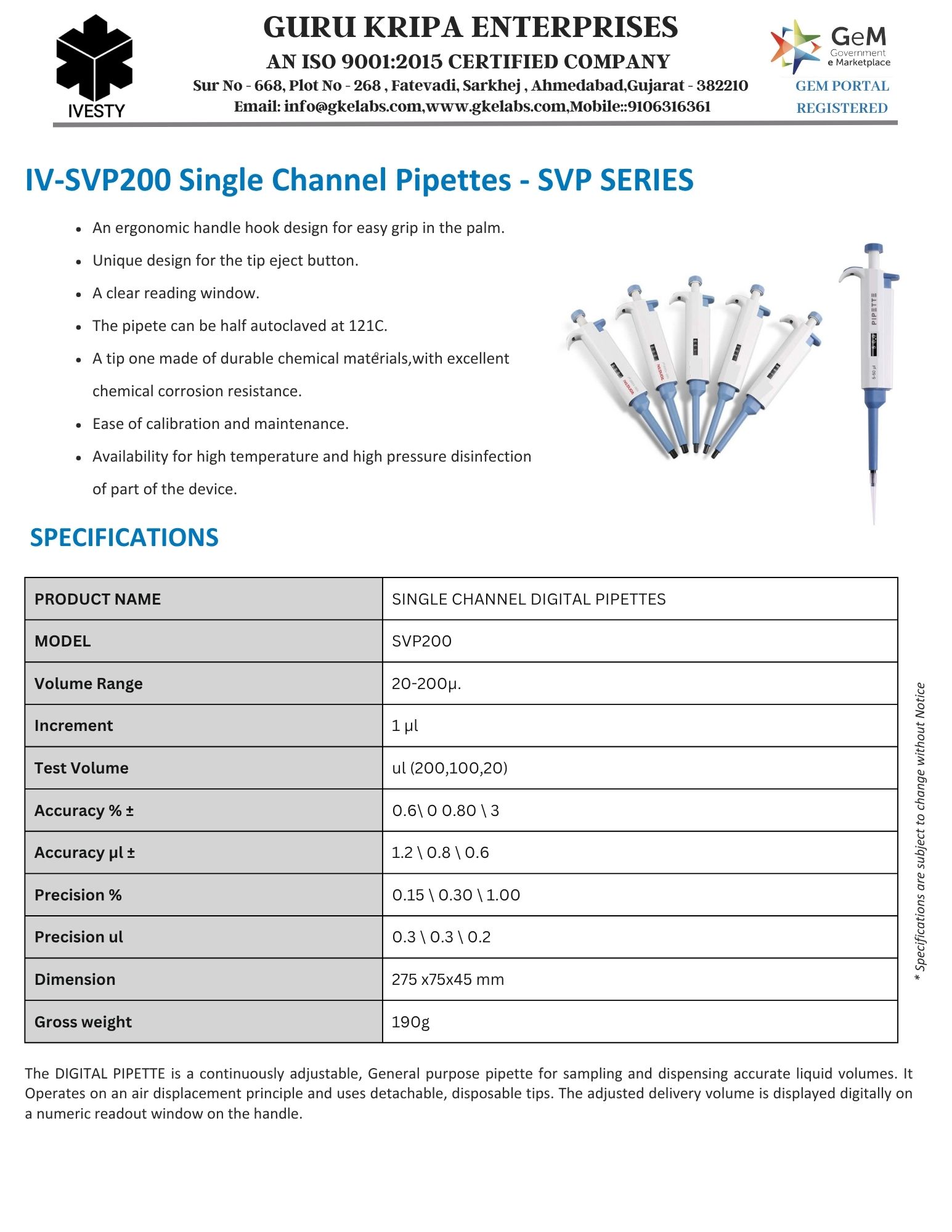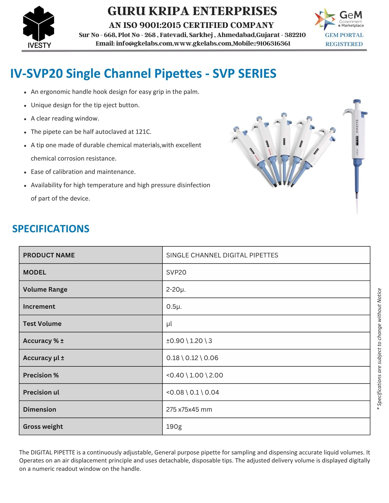 Single Channel Pipettes - SVP SERIES