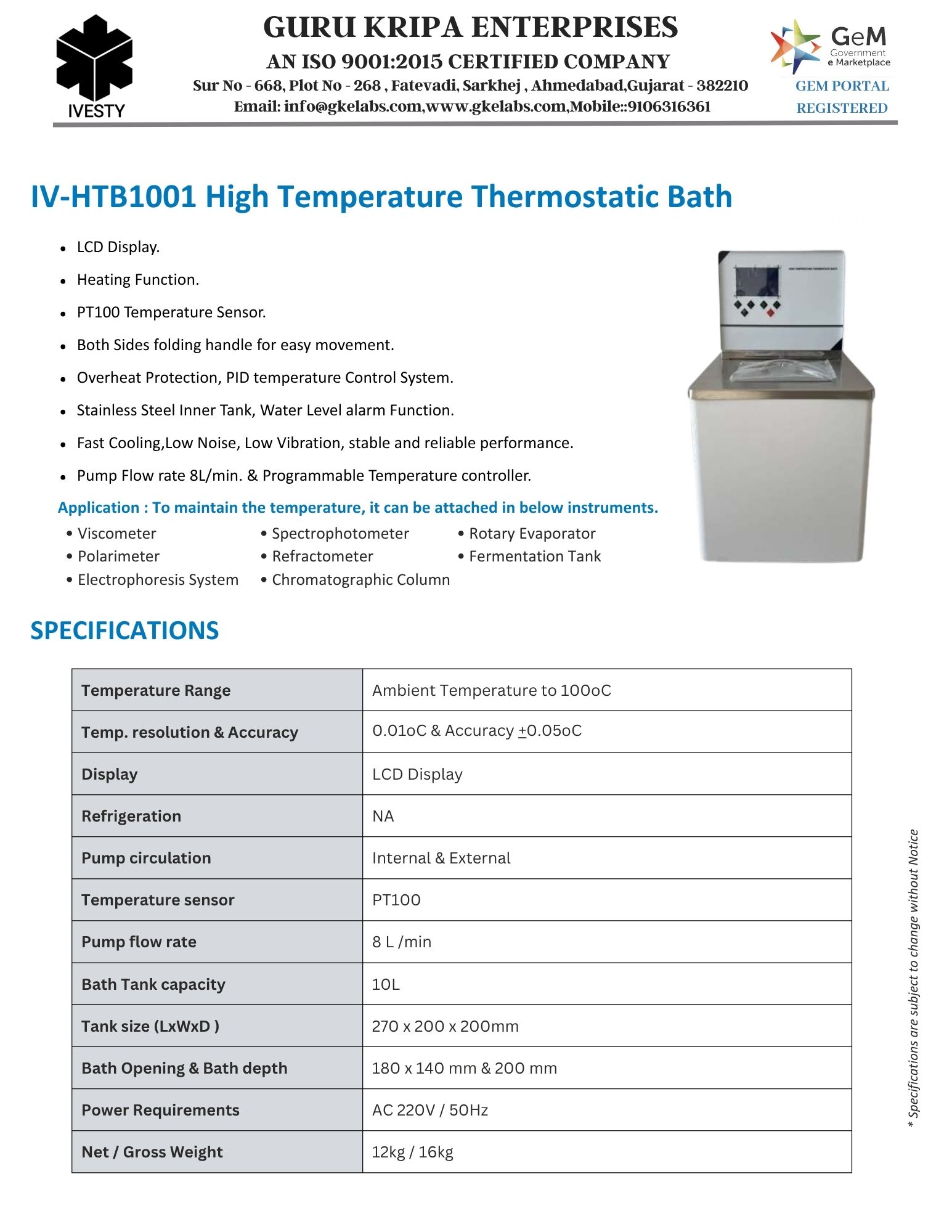 High Temperature Thermostatic Bath