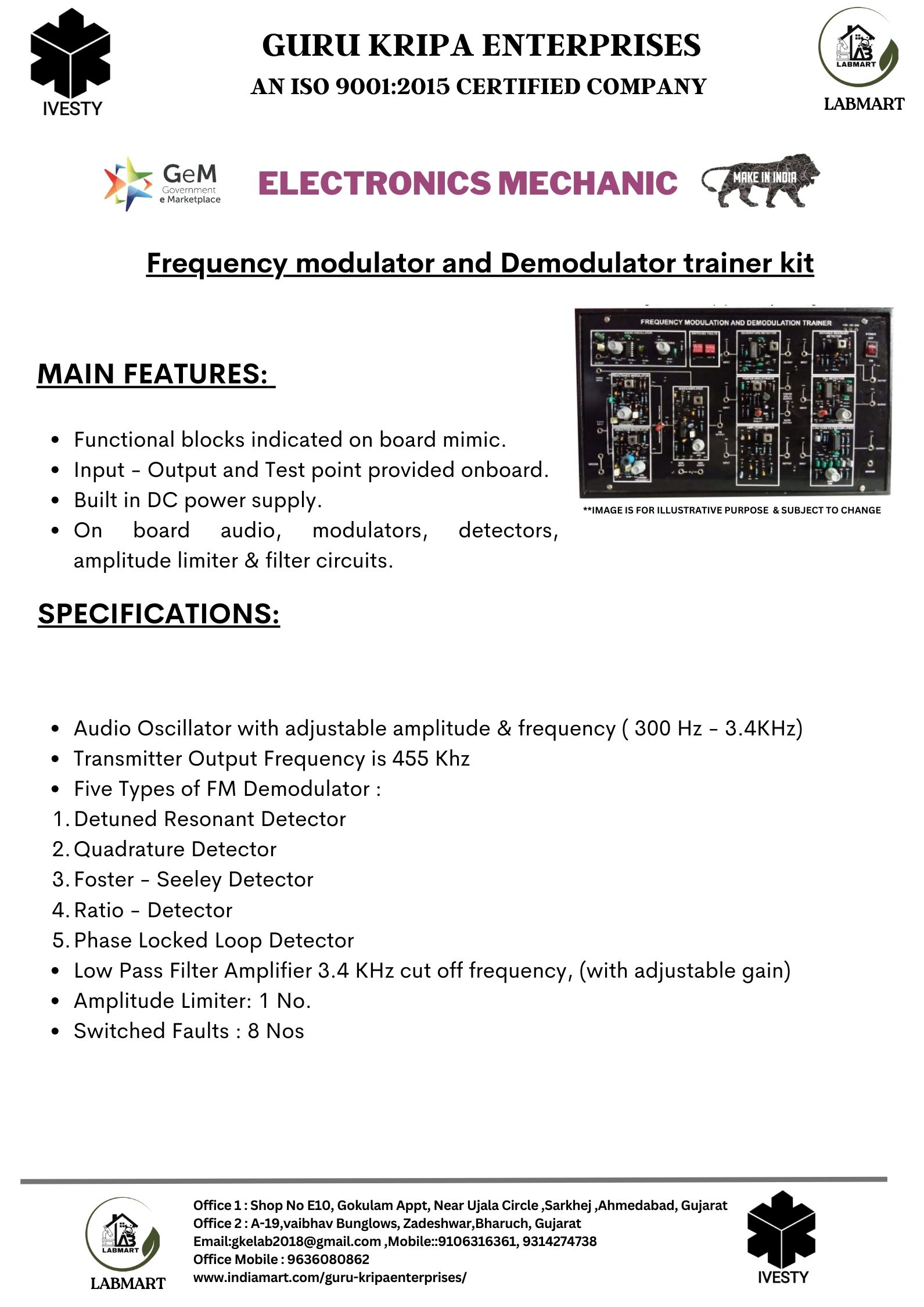 Frequency modulator and Demodulator trainer kit