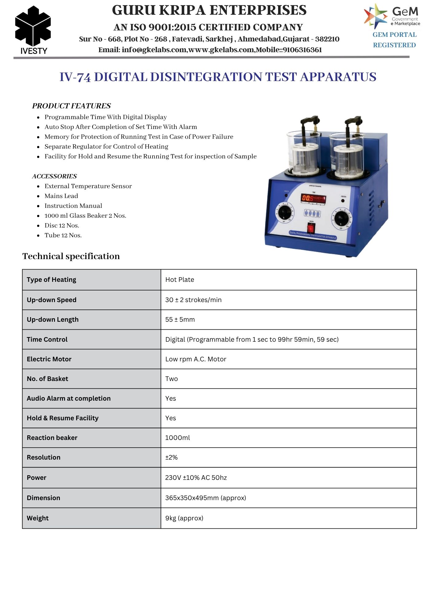 DIGITAL DISINTEGRATION TEST APPARATUS