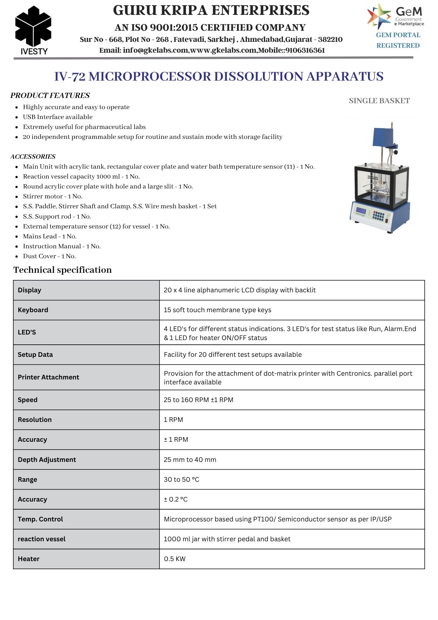 IV-720 MICROPROCESSOR DISSOLUTION TEST APPARATUS