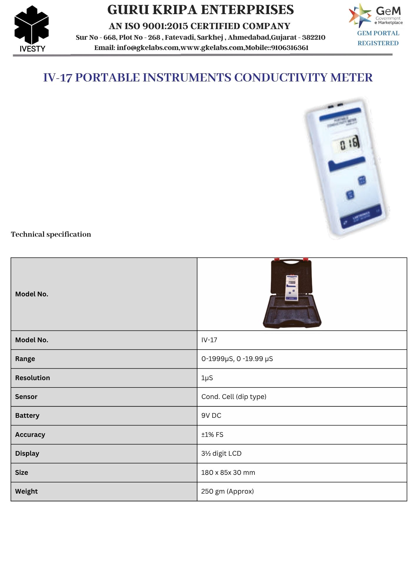 PORTABLE INSTRUMENTS CONDUCTIVITY METER