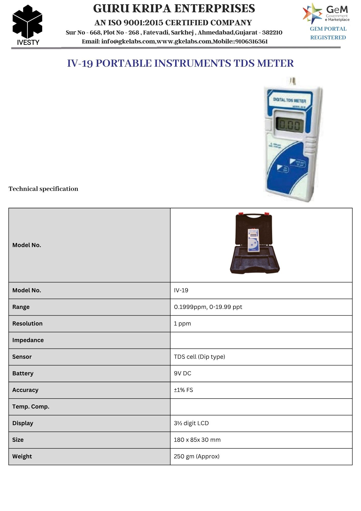 PORTABLE INSTRUMENTS TDS METER