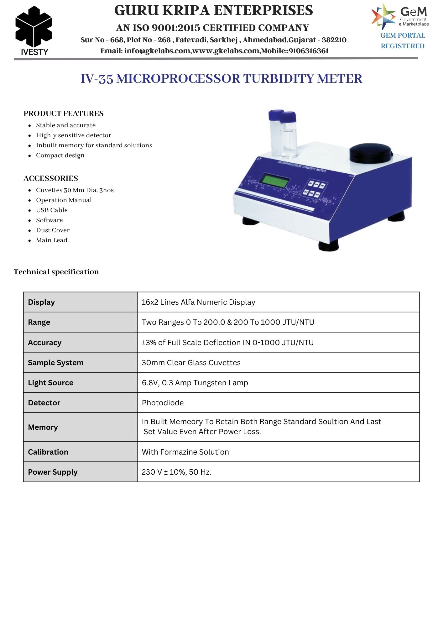 IV-35 MICROPROCESSOR TURBIDITY METER