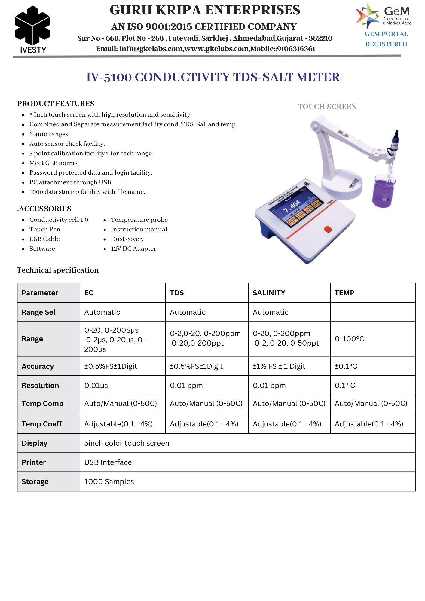 MICROPROCESSOR COND-TDS-SALT METER