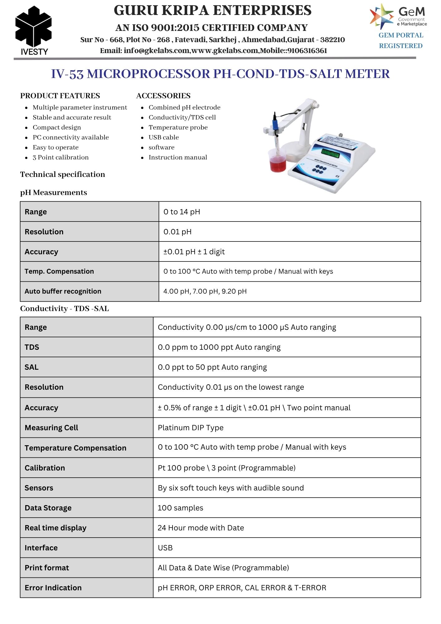 DIGITAL PH-CONDUCTIVITY TEMPERATURE METER