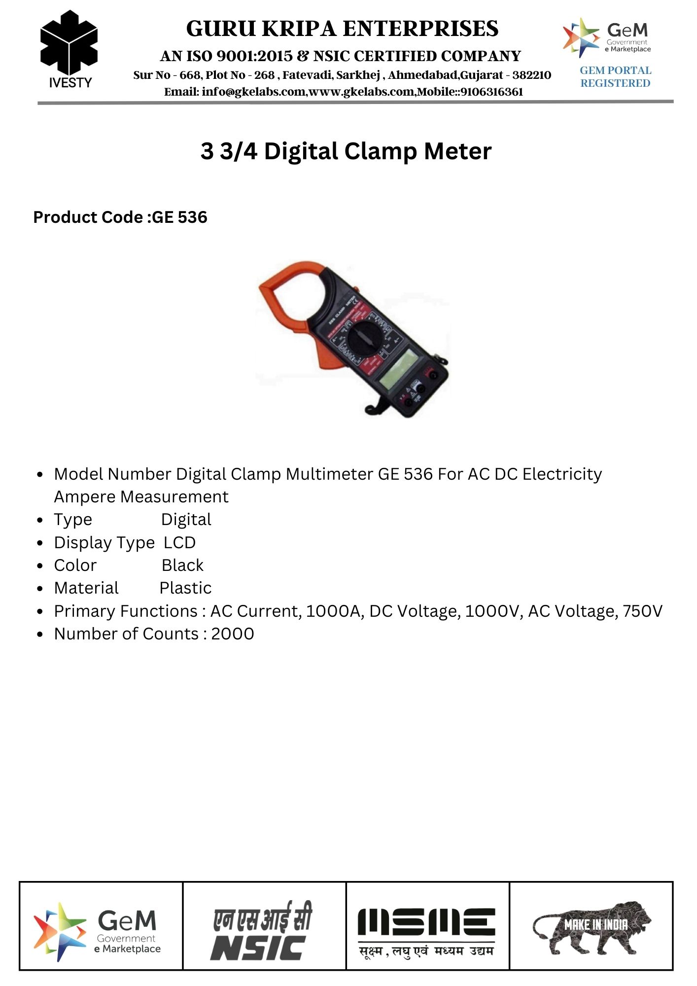 3 3/4 Digital Clamp Meter