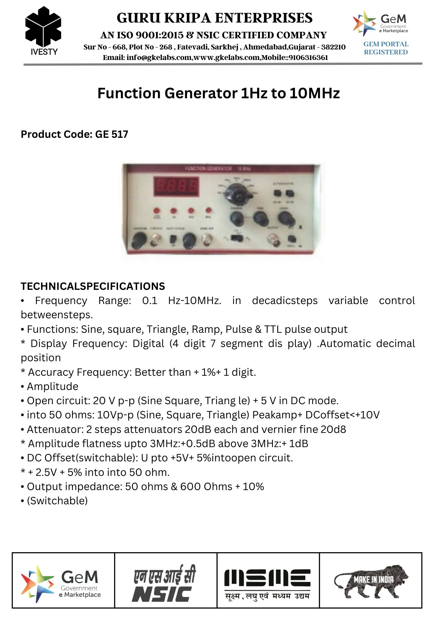 Function Generator 1Hz to 10MHz