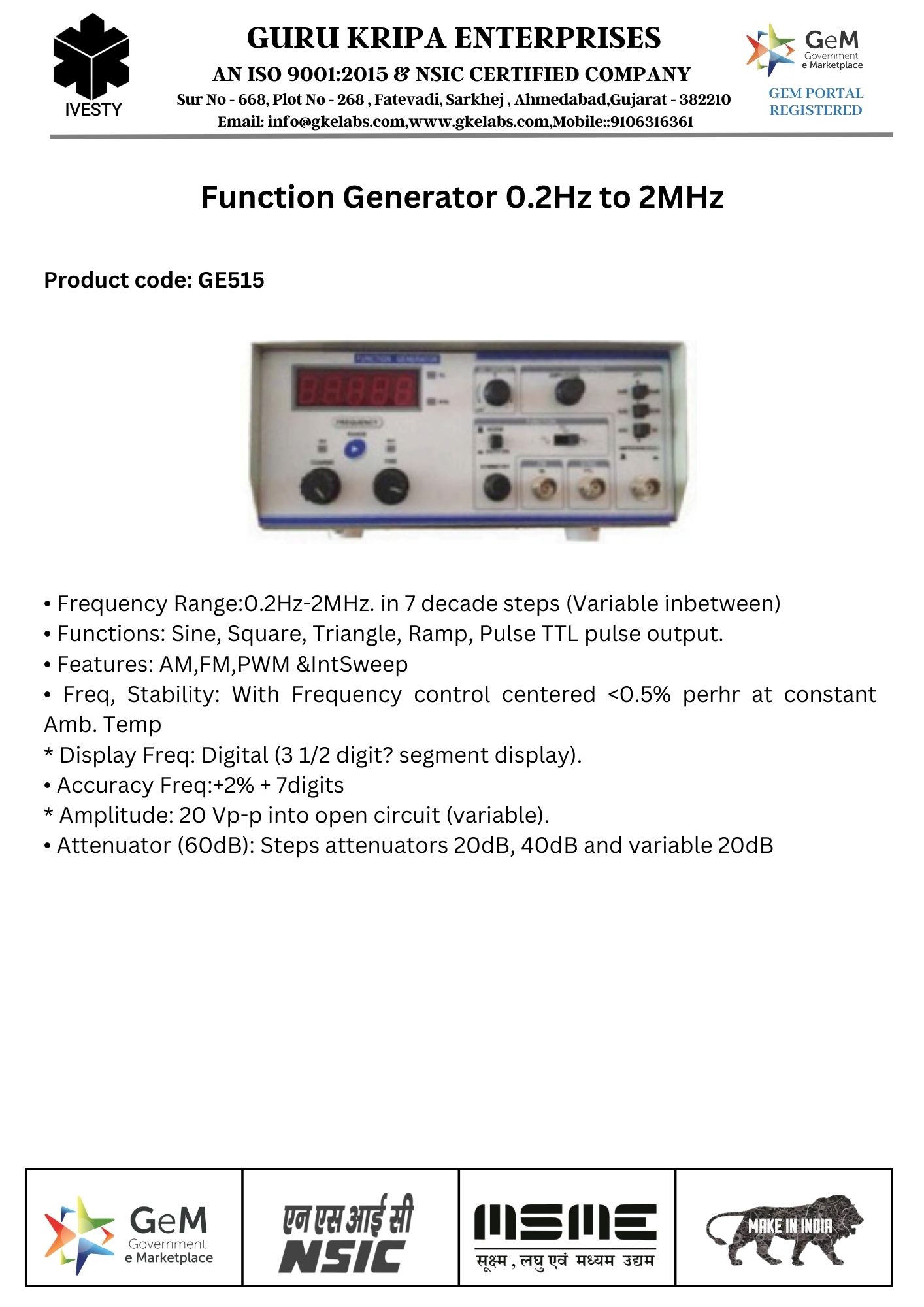 Function Generator 0.2Hz to 2MHz