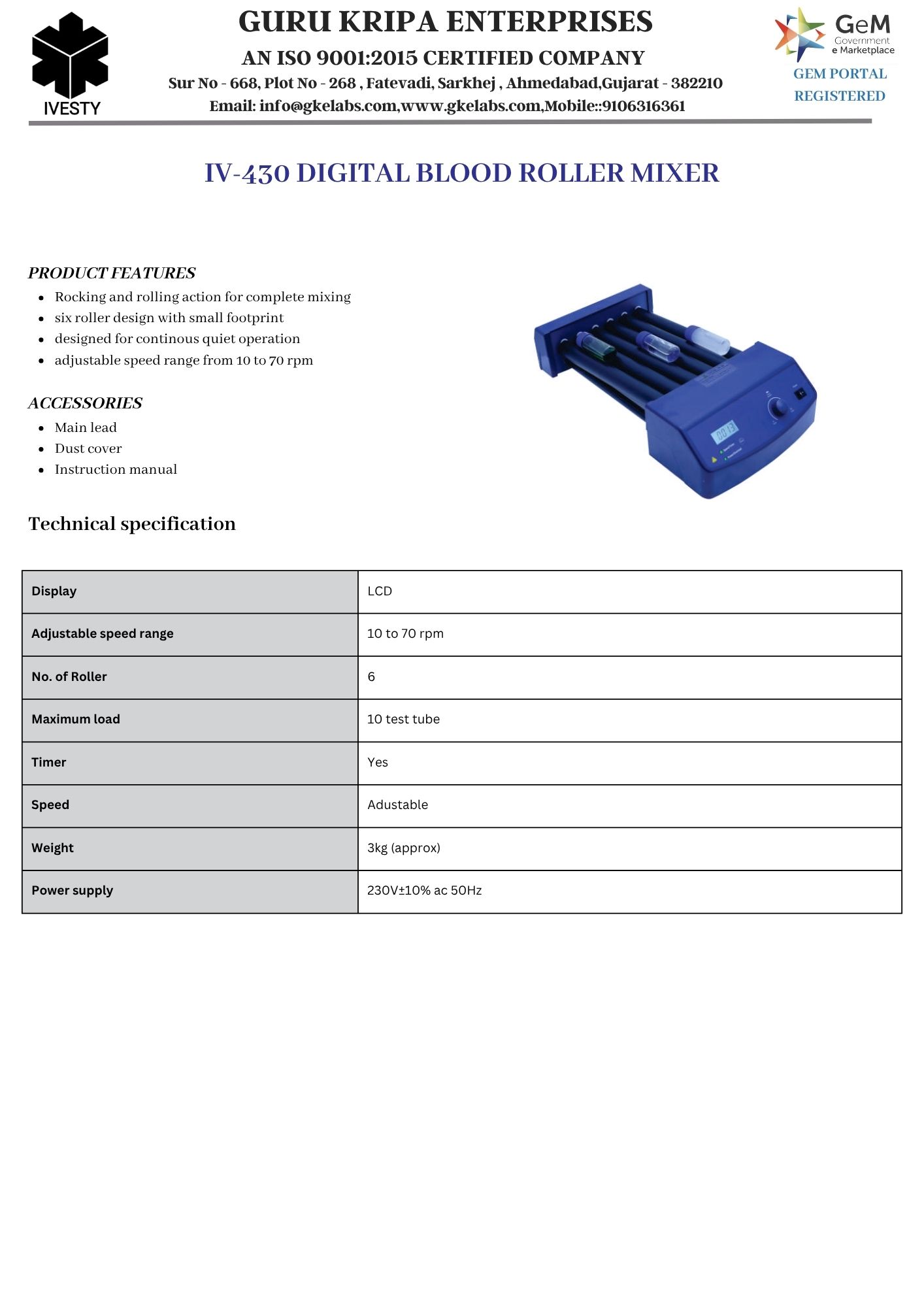 DIGITAL BLOOD ROLLER MIXER