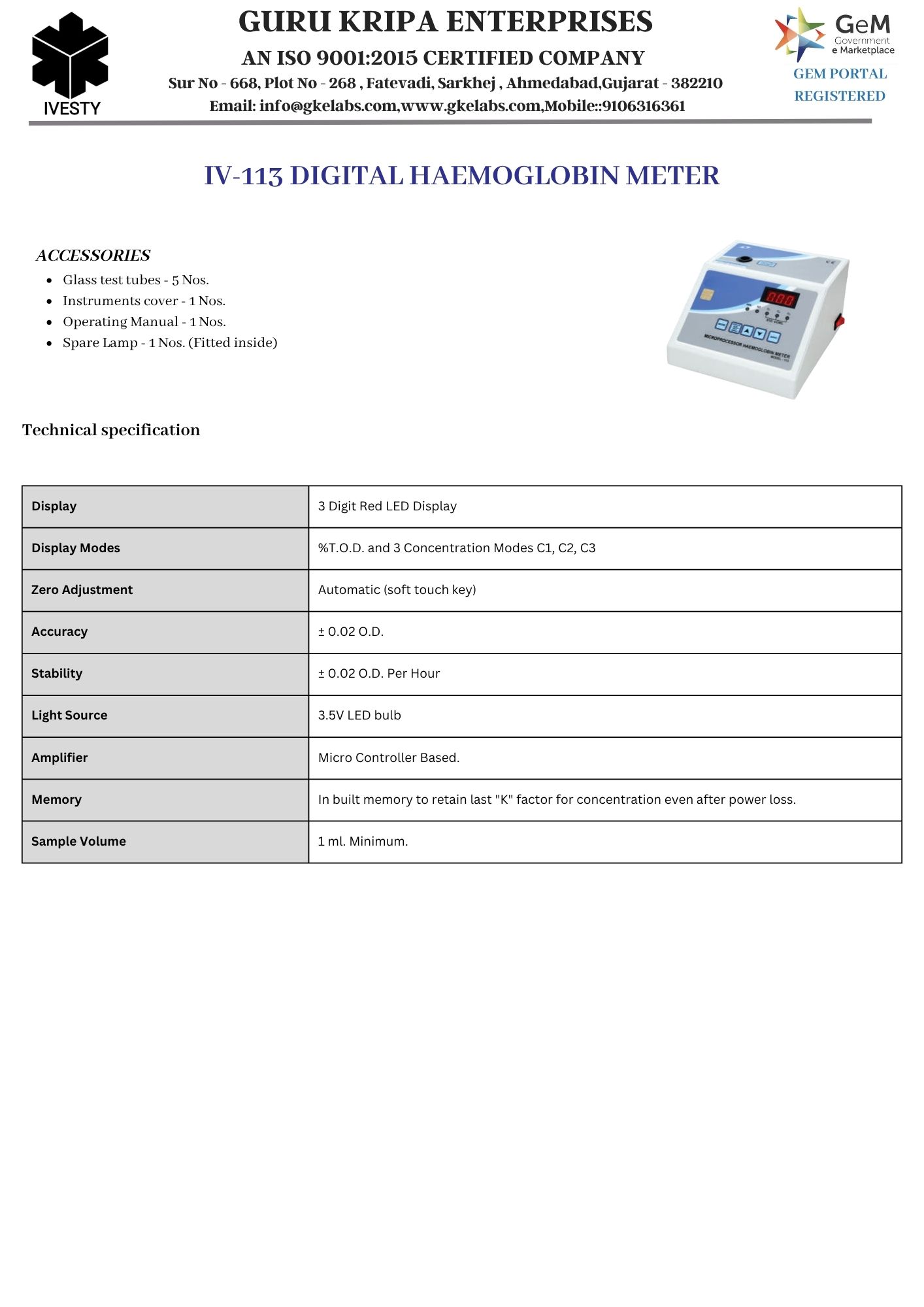DIGITAL HAEMOGLOBIN METER