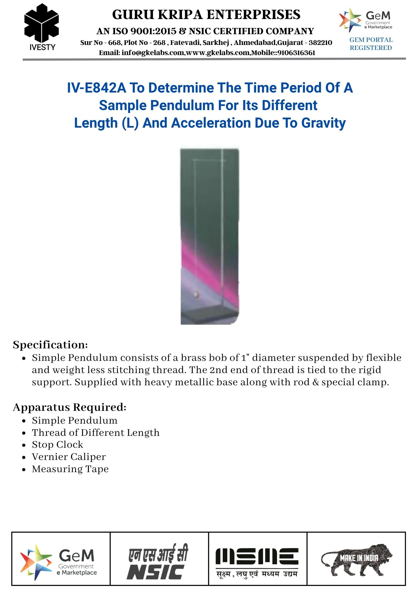 To Determine The Time Period Of A Sample Pendulum For Its Different Length (L) And Acceleration Due To Gravity