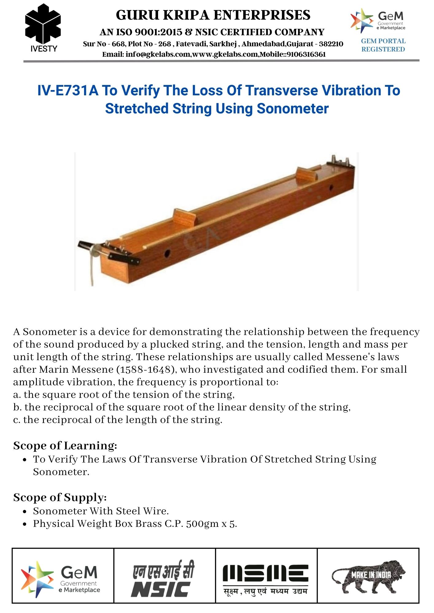 To Verify The Loss Of Transverse Vibration To Stretched String Using Sonometer