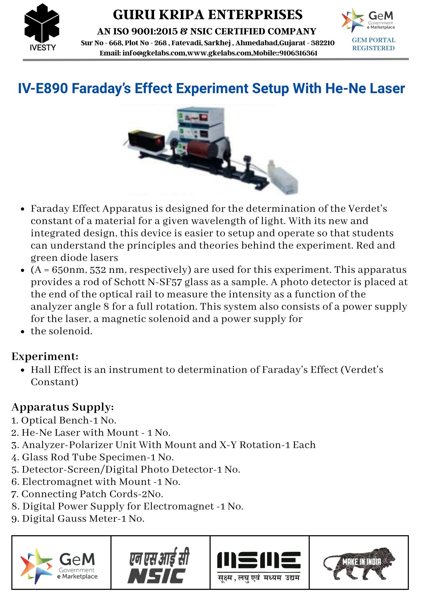 Faraday’s Effect Experiment Setup With He-Ne Laser