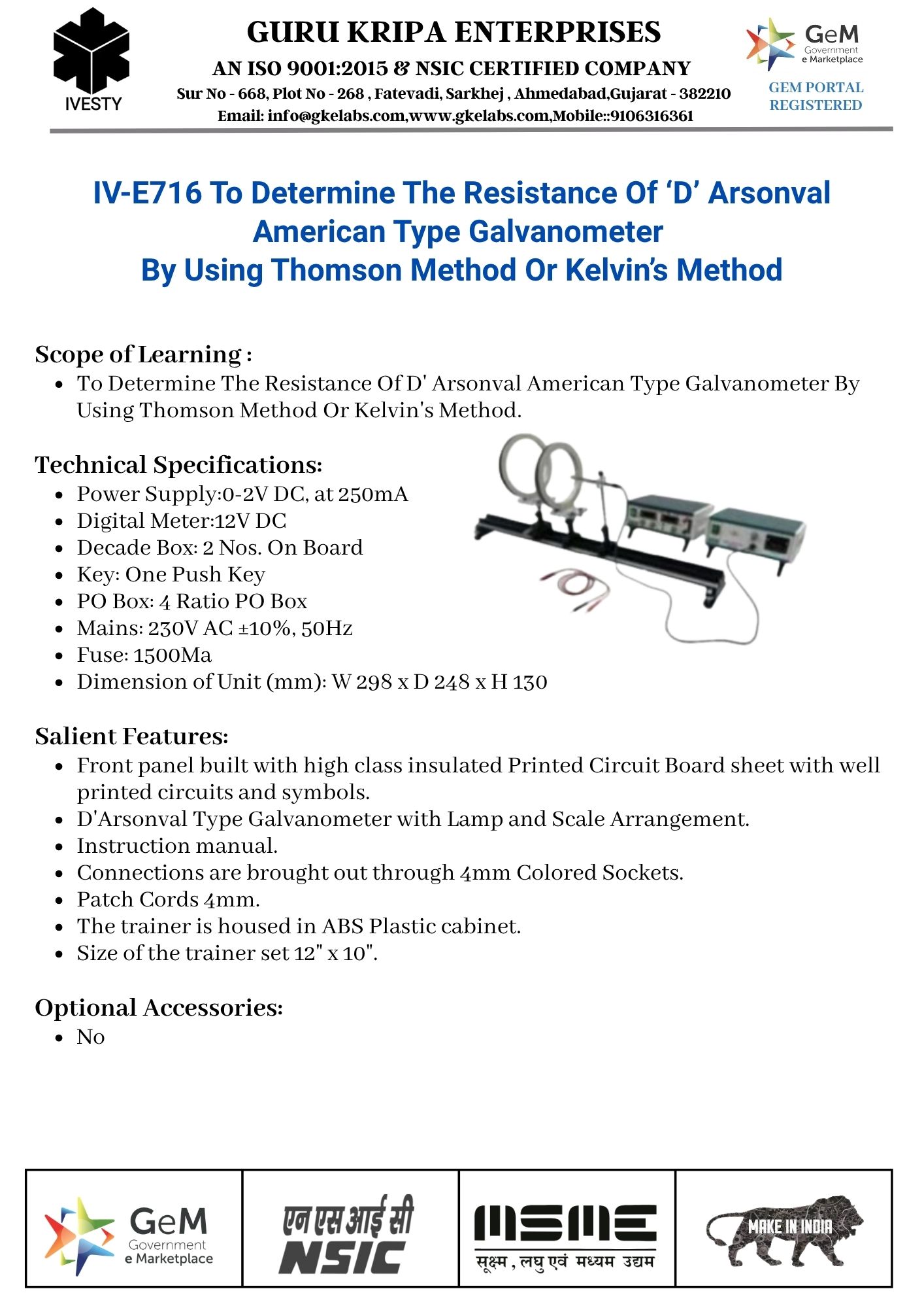 To Determine The Resistance Of ‘D’ Arsonval American Type Galvanometer By Using Thomson Method Or Kelvin’s Method