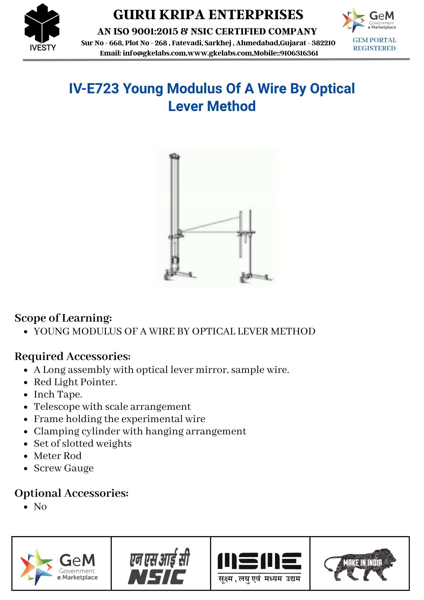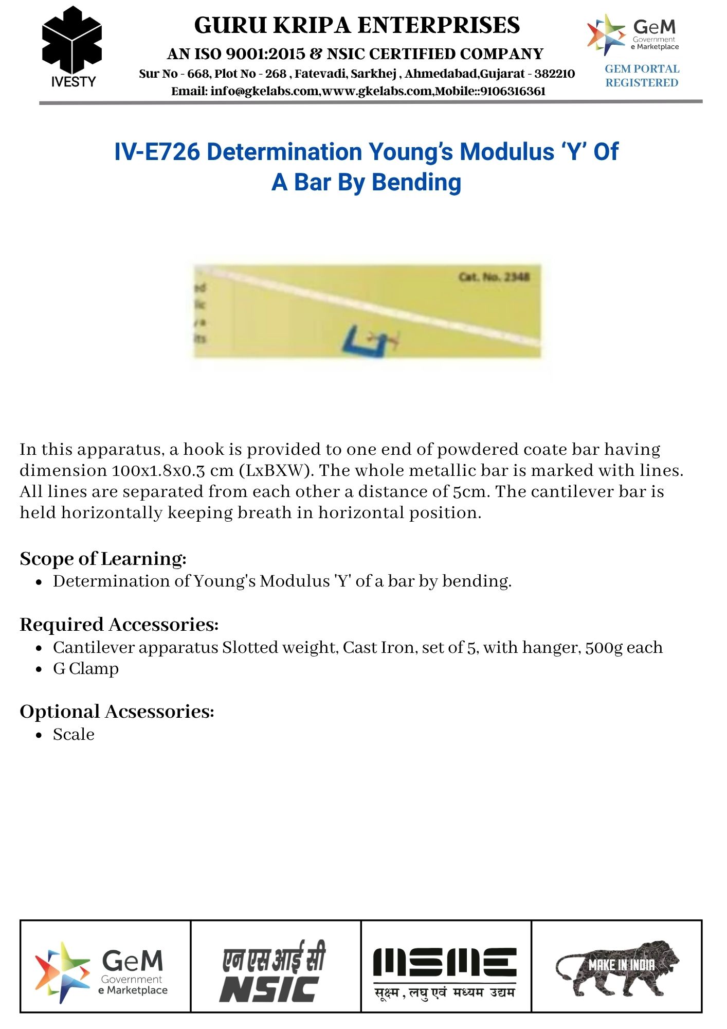 Determination Young’s Modulus ‘Y’ Of A Bar By Bending