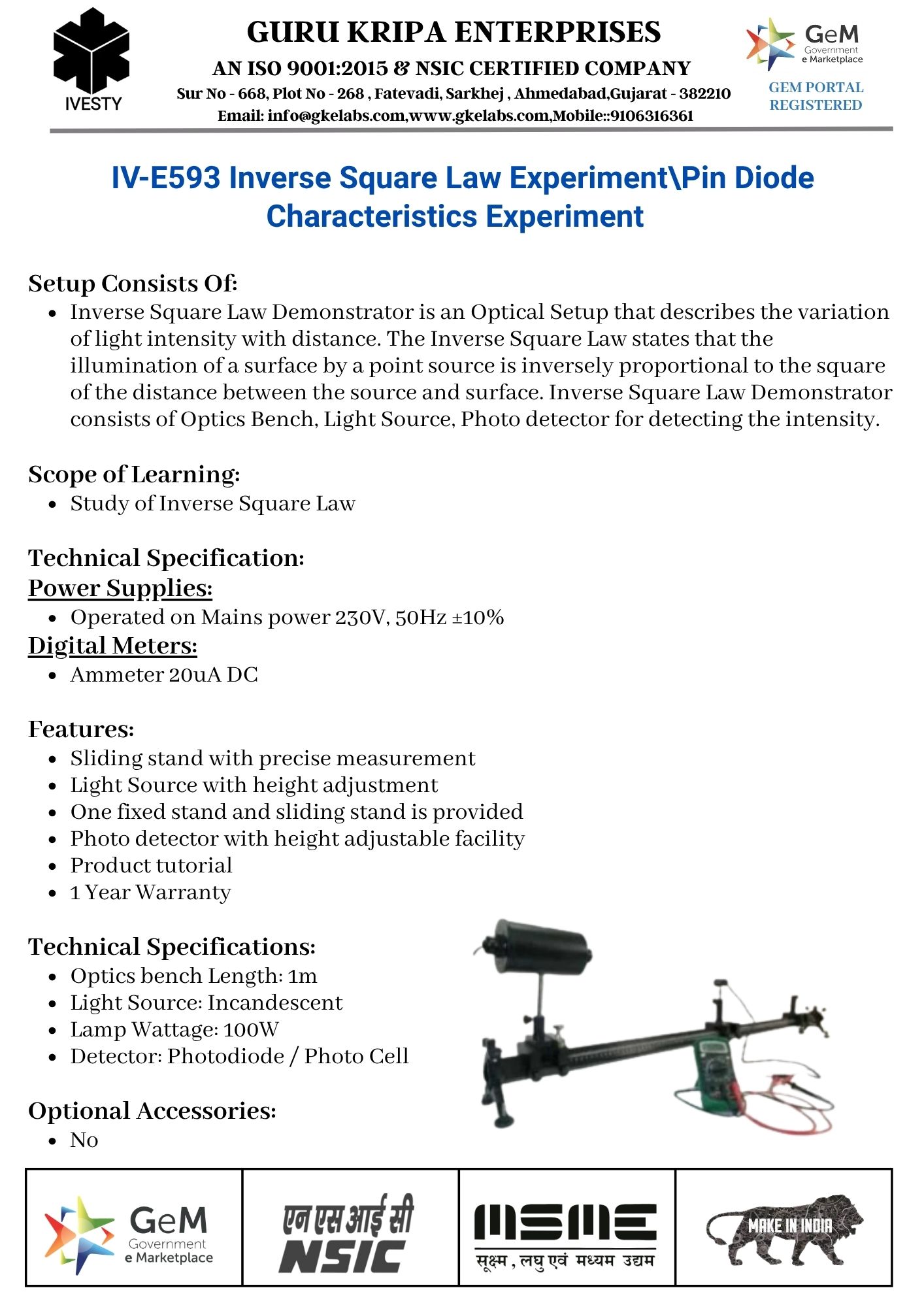 Inverse Square Law Experiment\Pin Diode Characteristics Experiment