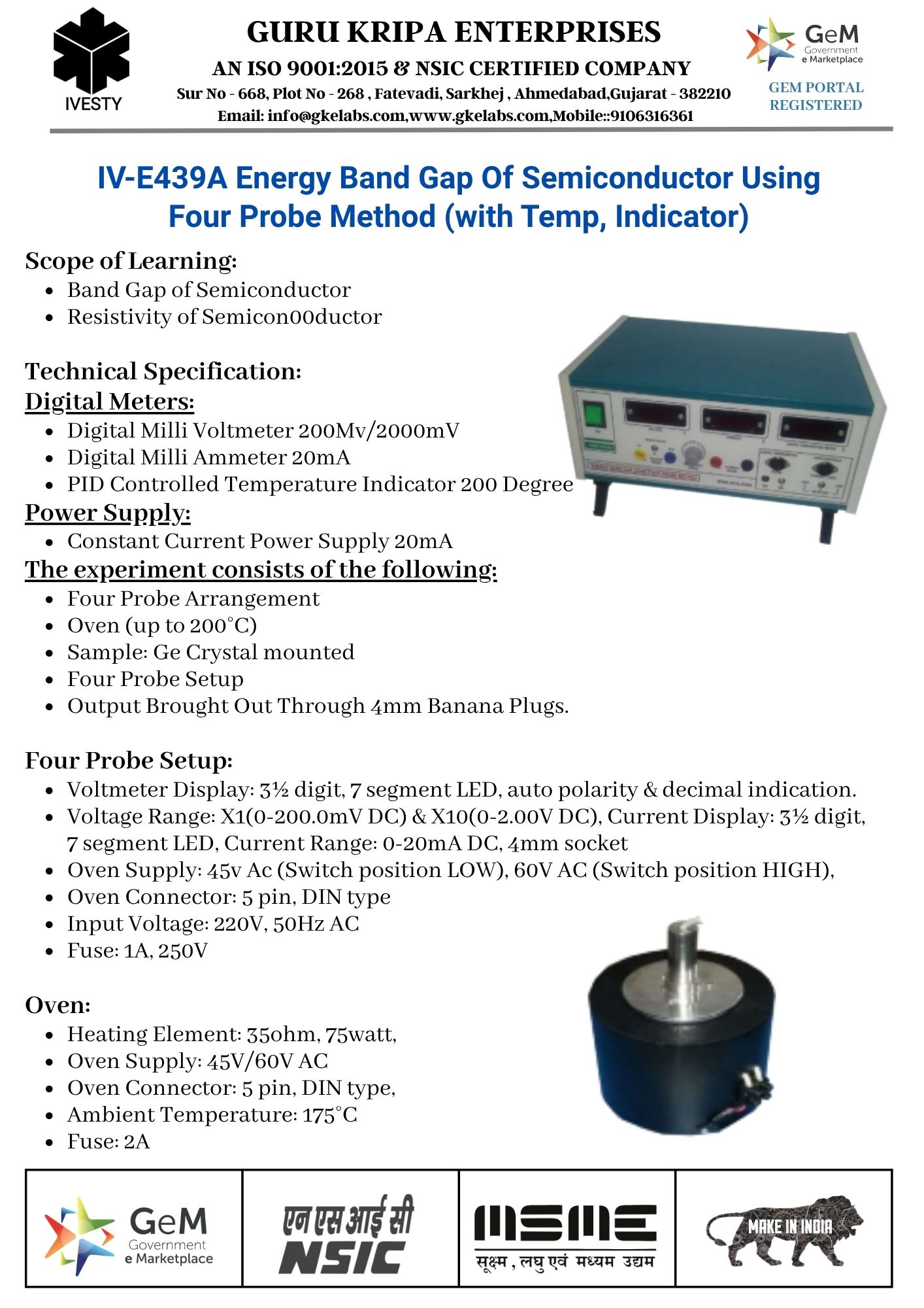 Energy Band Gap Of Semiconductor Using Four Probe Method (with Temp, Indicator)