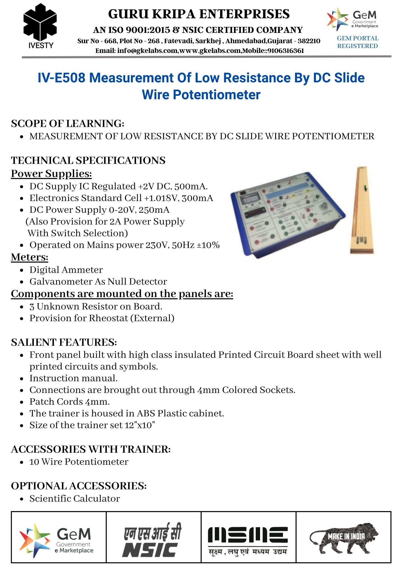 Measurement Of Low Resistance By DC Slide Wire Potentiometer