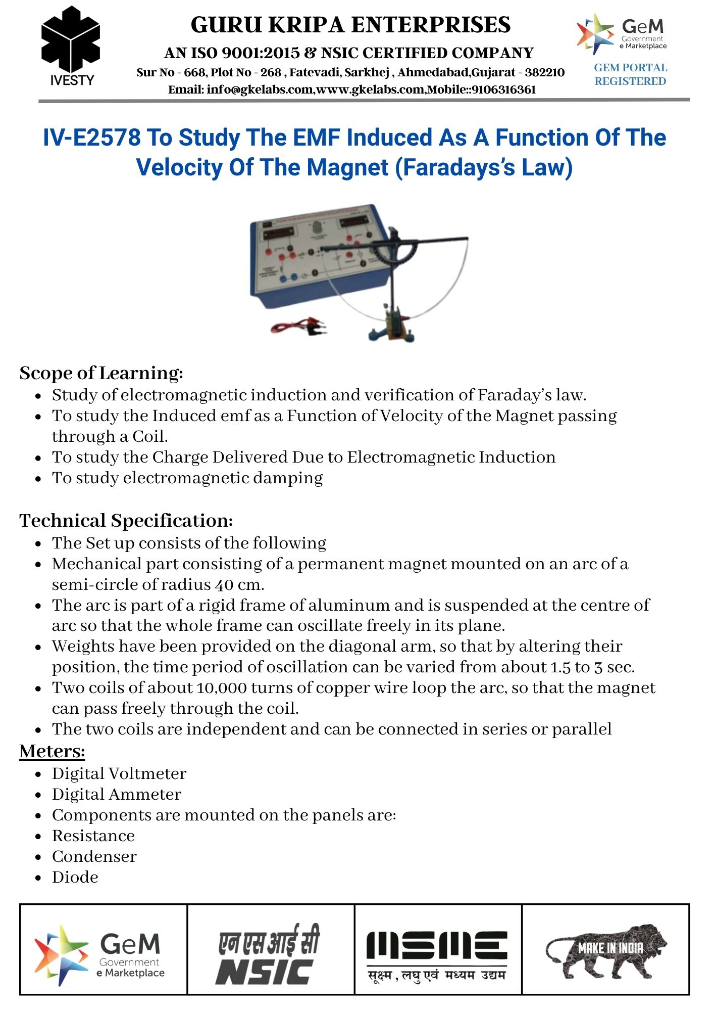 To Study The EMF Induced As A Function Of The Velocity Of The Magnet (Faradays’s Law)