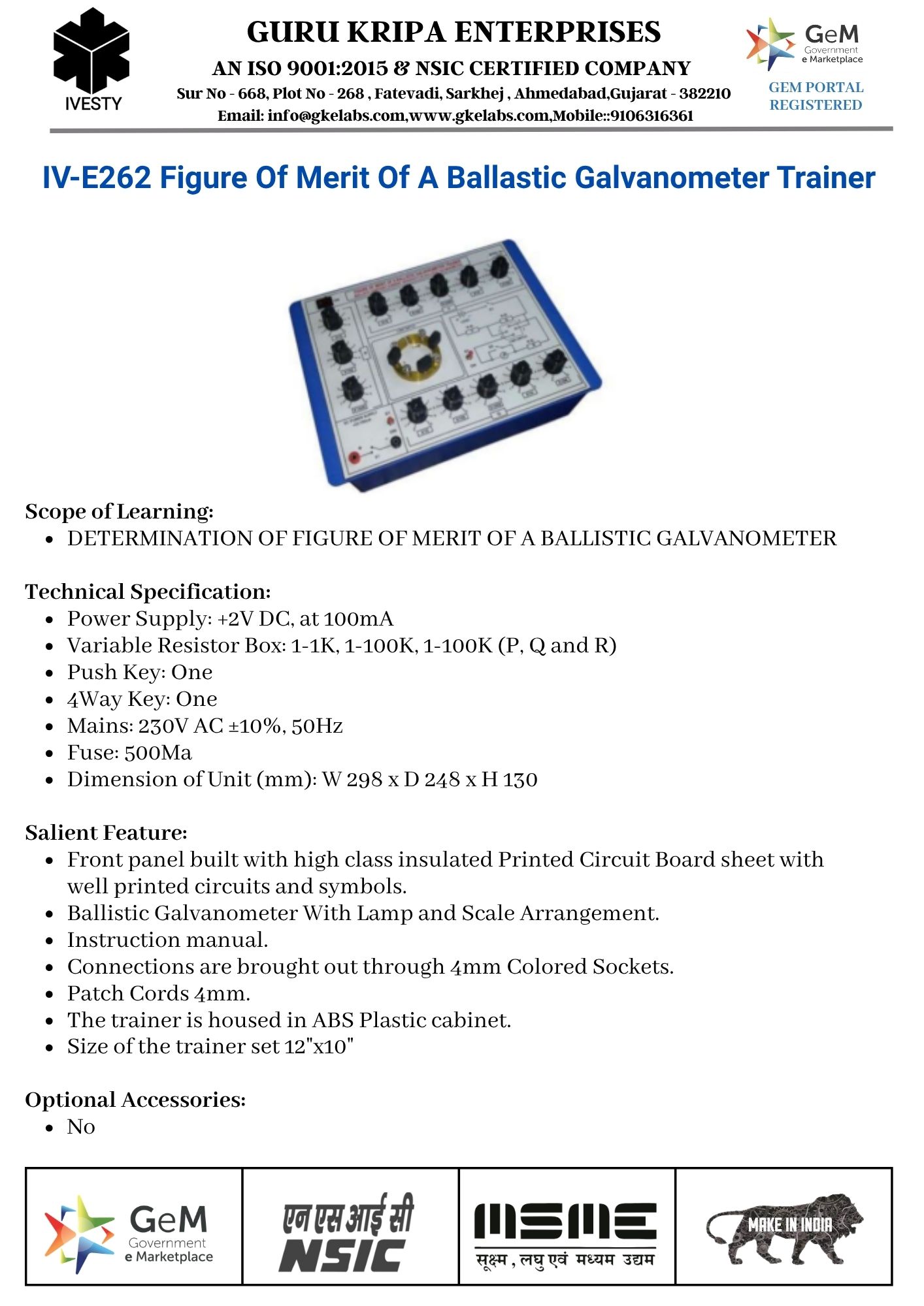 Figure Of Merit Of A Ballastic Galvanometer Trainer