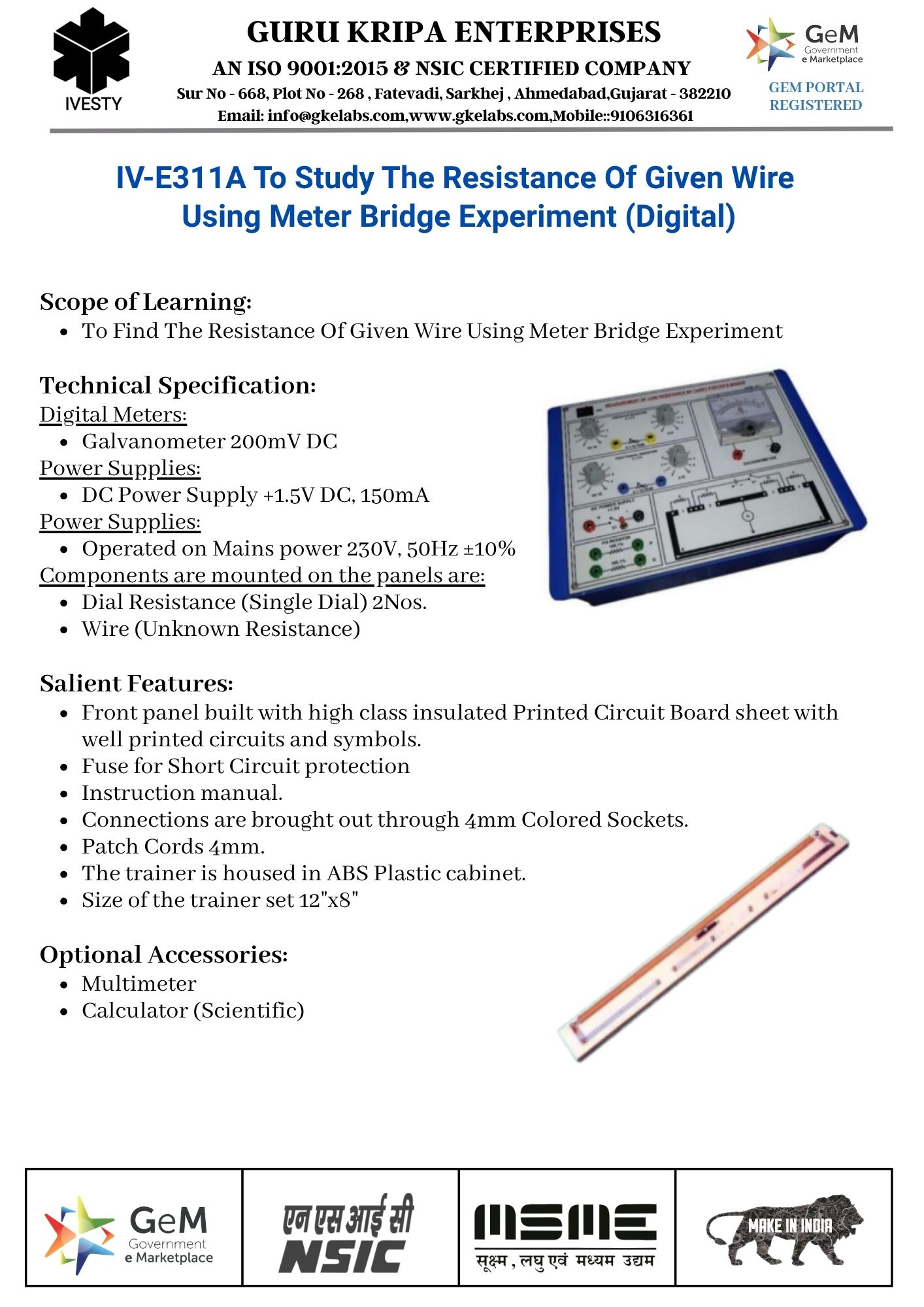 To Study The Resistance Of Given Wire Using Meter Bridge Experiment (Digital)