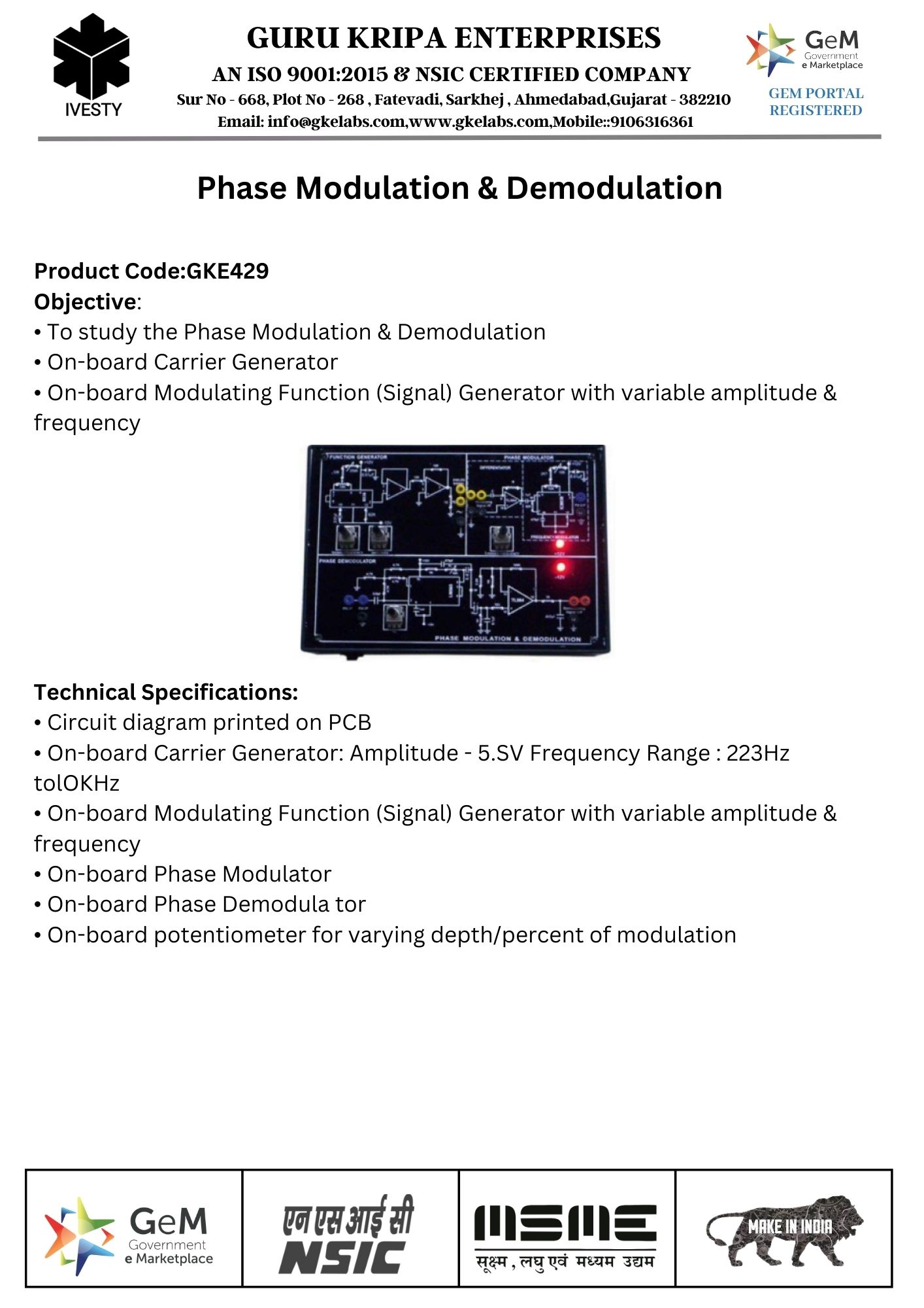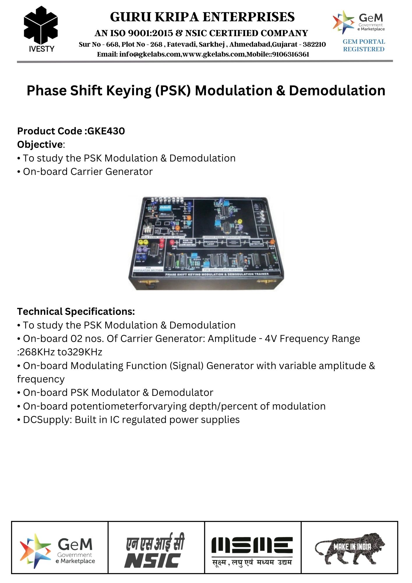 PAM-PWM-PPM Modulation & Demodulation Trainer Kit